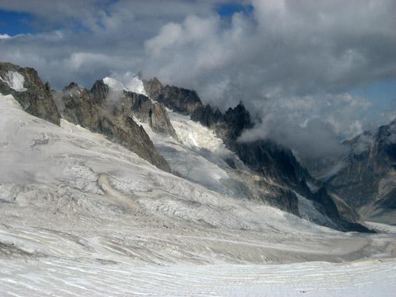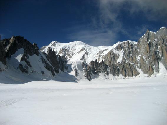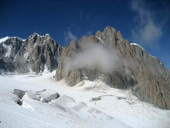 Solo tre asterischi per il panorama visto nell’unica mezzora di bel tempo concessa in tutta la giornata.Il meteo Chamonix questa volta ha inciuccato le quote ma non importa prima o poi doveva e poteva capitare.In realtà noi siamo partiti con l’intenzione di fare la traversata da Punta Helbronner all’Aiguille du Midì,purtroppo la nebbia ci ha subito avvolti e la spruzzata di neve della notte ha nascosto la traccia.Risultato che ci ha portato a vedere, durante una brevissima schiarita, che eravamo andati a finire nel Circle del Maudit.Tornati sui nostri passi e non trovando nella nebbia la traccia giusta abbiamo optato per fare questa salita.Giunti al Colle d’Entreves però la nebbia,il freddo e l’affollamento (tutti si erano persi e hanno ripiegato su questa salita!) ci hanno consigliato di fare dietro front.