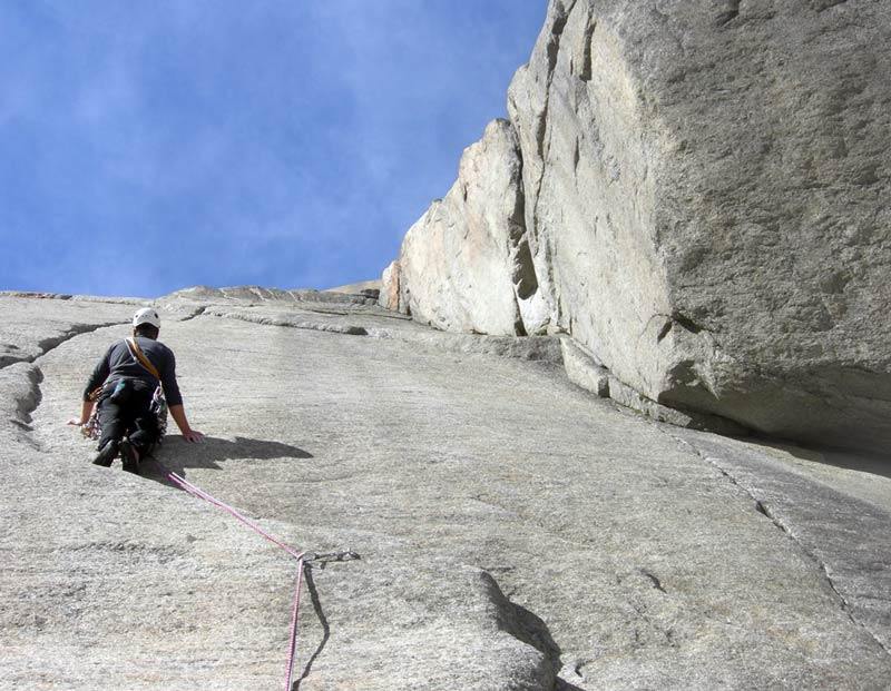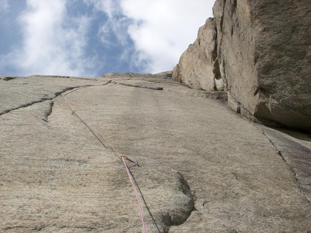 Bellissima via, prevalentemente di placca, con L3 fessura di 45m spettacolare….soste a spit e spit lungo i tiri solamente dove impossibile proteggersi…portare serie nut e friend..