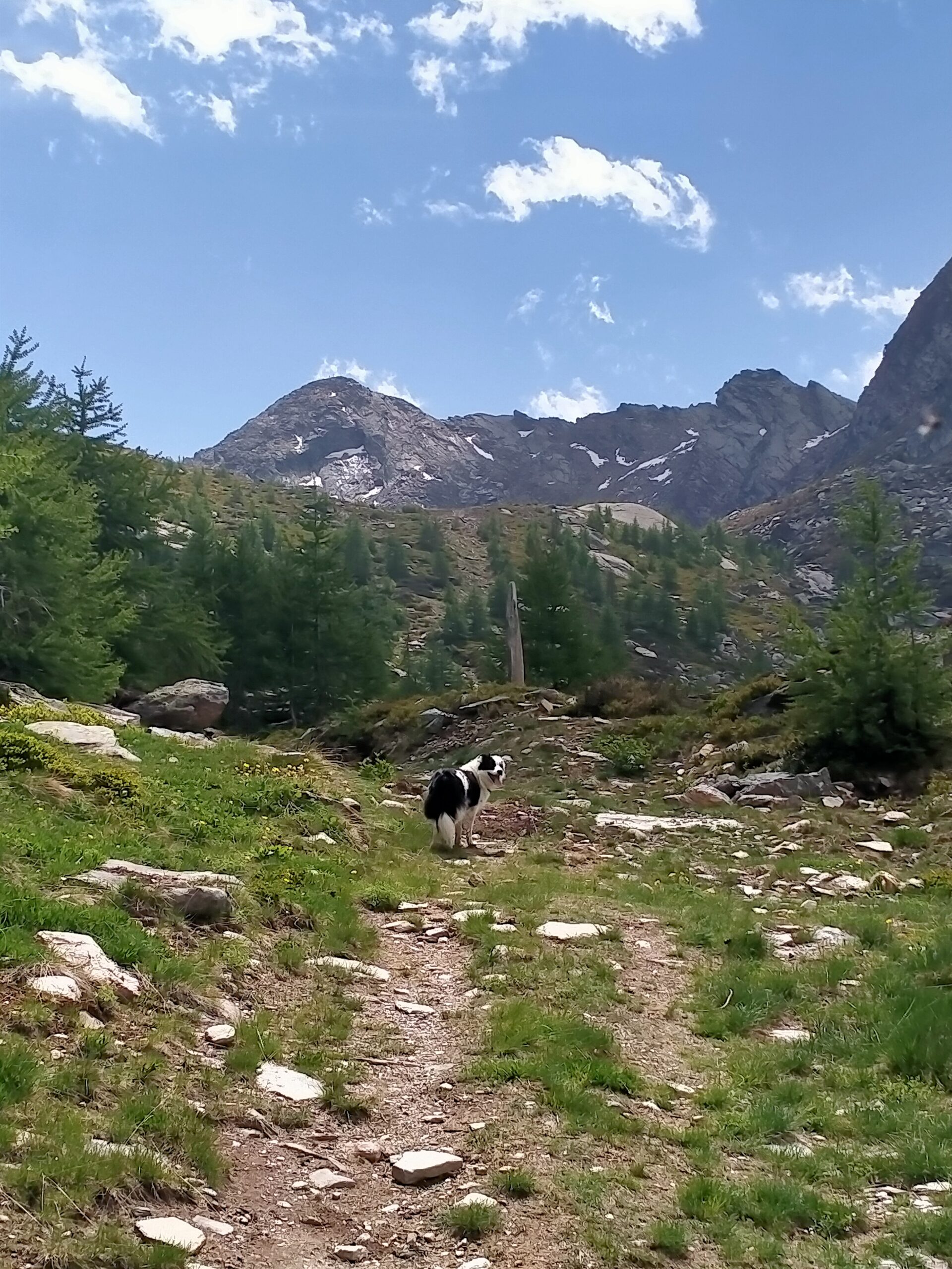 Dal termine del parcheggio di Malzat si imbocca una strada sterrata che è una pista da sci e la si segue fino al Piano Alpet, incrociando più volte tracce di discesa in MTB.