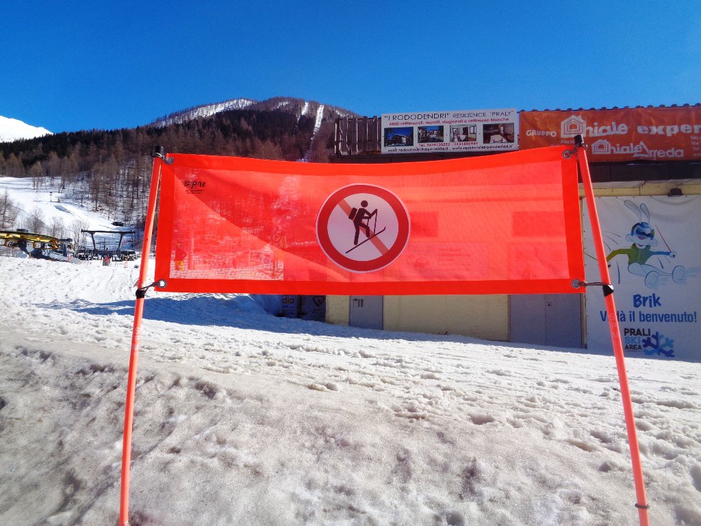 Casualmente, all’ Alpe Miandette , anziche’ continuare nel bosco come sarebbe stato opportuno essendo gli impianti aperti, ho seguito una traccia che mi ha fatto raggiungere le piste.