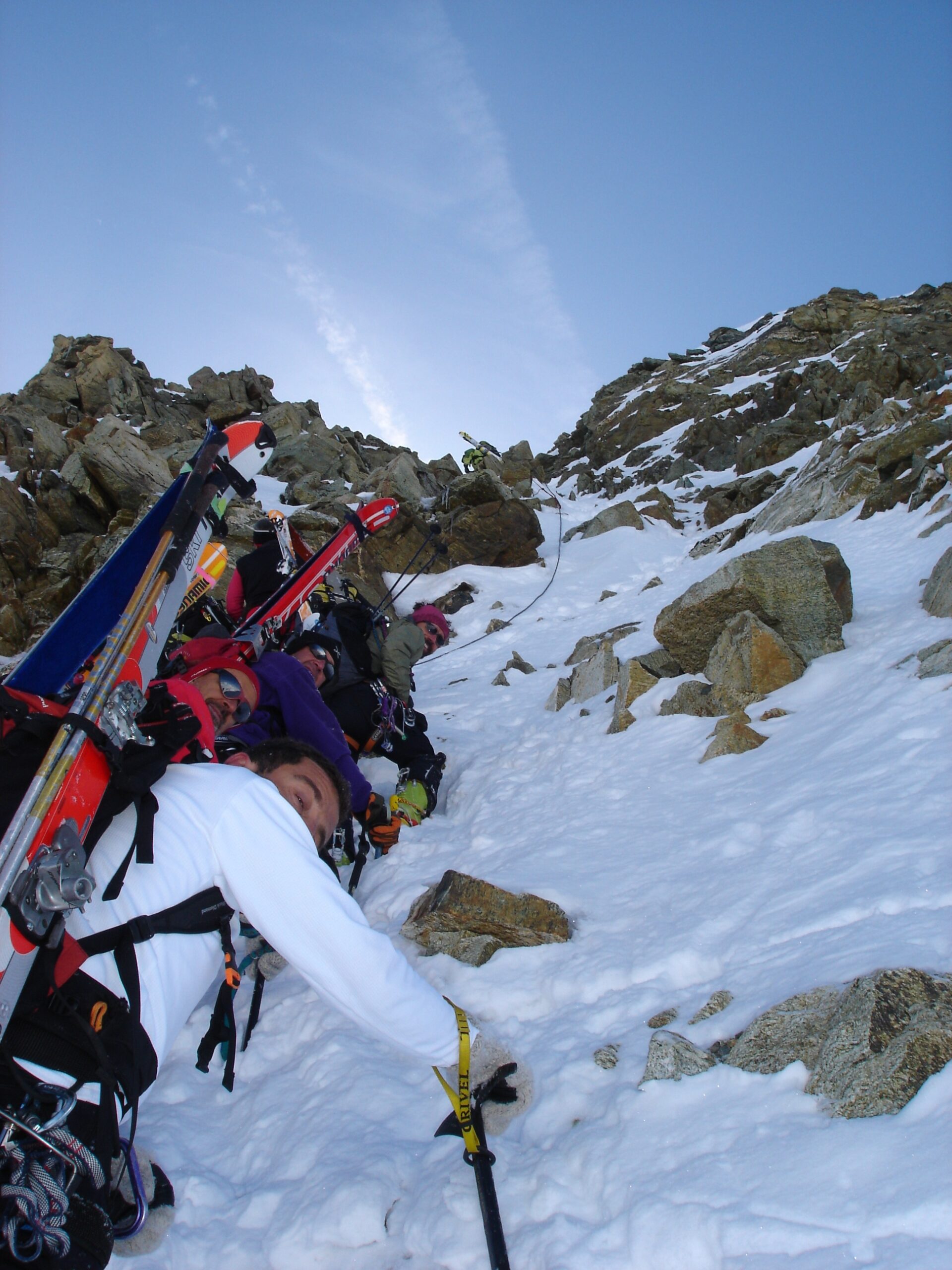 Bellissima gita abbastanza impegnativa. Abbiamo dormito al Rif. Créte Séche e, il giorno dopo, saliti sulla cima da Nord. Per raggiungere la cresta Nord abbiamo salito un canale di misto così come per salire sulla cima dalla quale, dopo aver trovato gli ancoraggi per le doppie e averne allestite due, abbiamo raggiunto la Becca Rayette da cui siamo poi scesi, su neve stupenda.