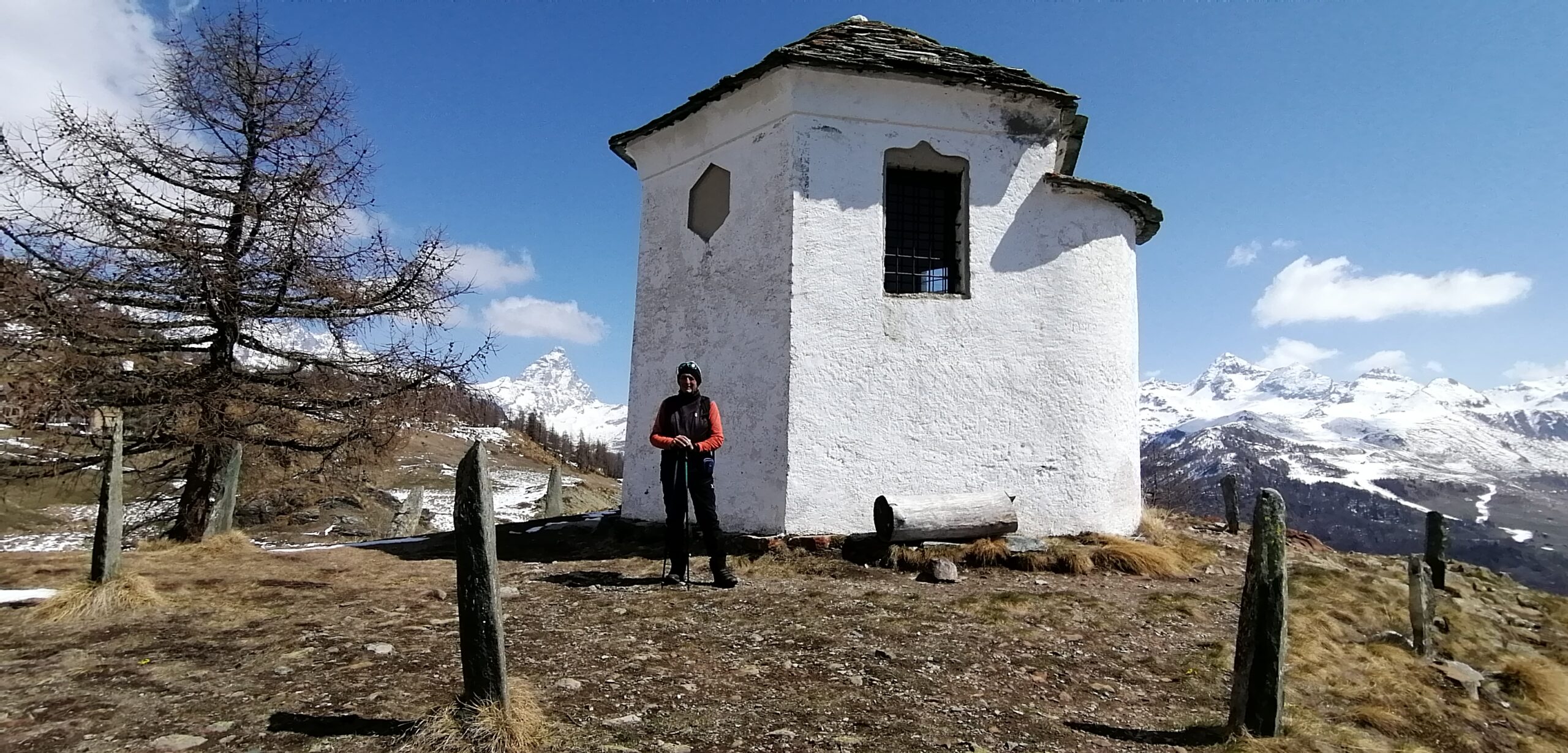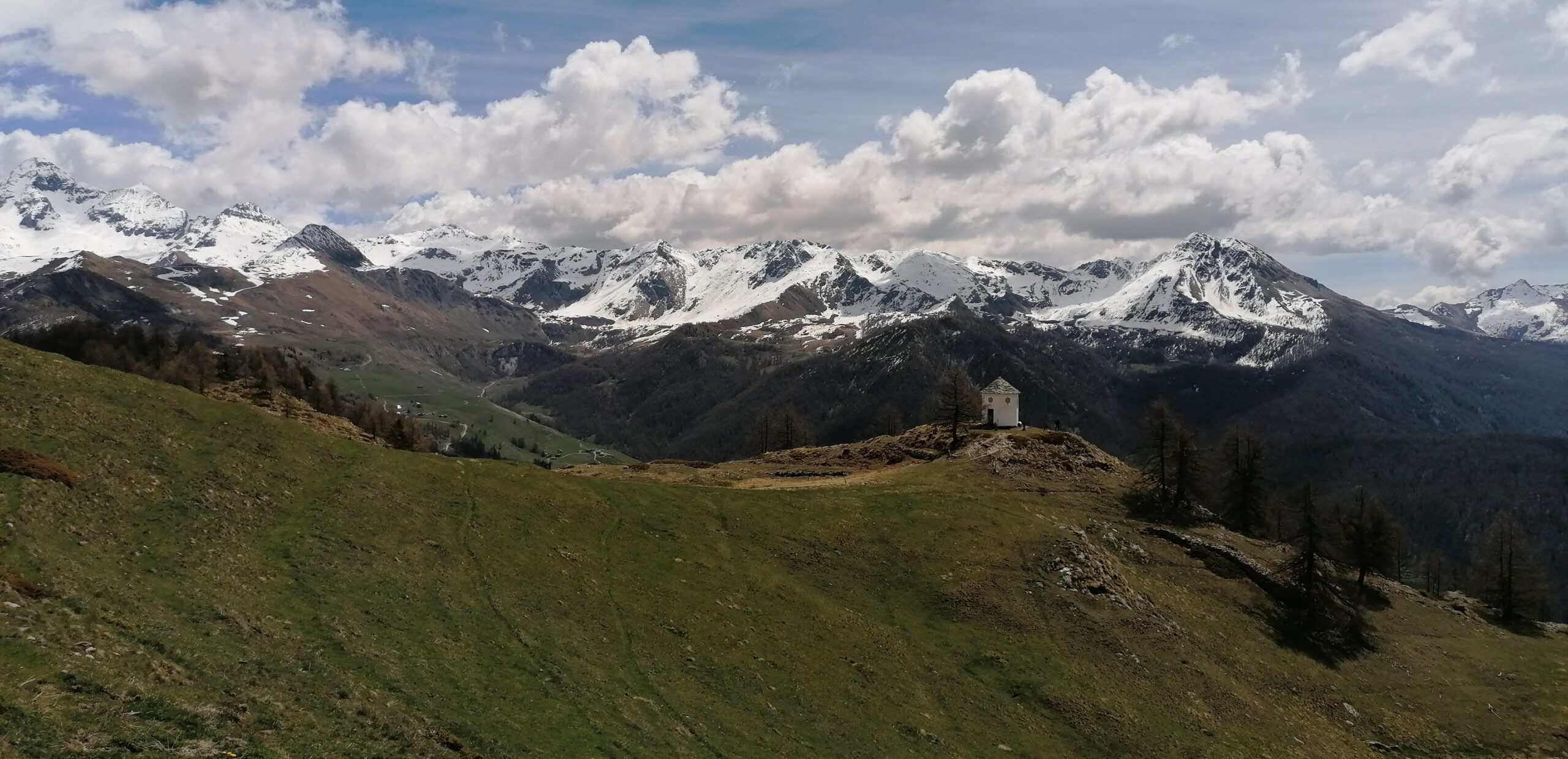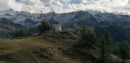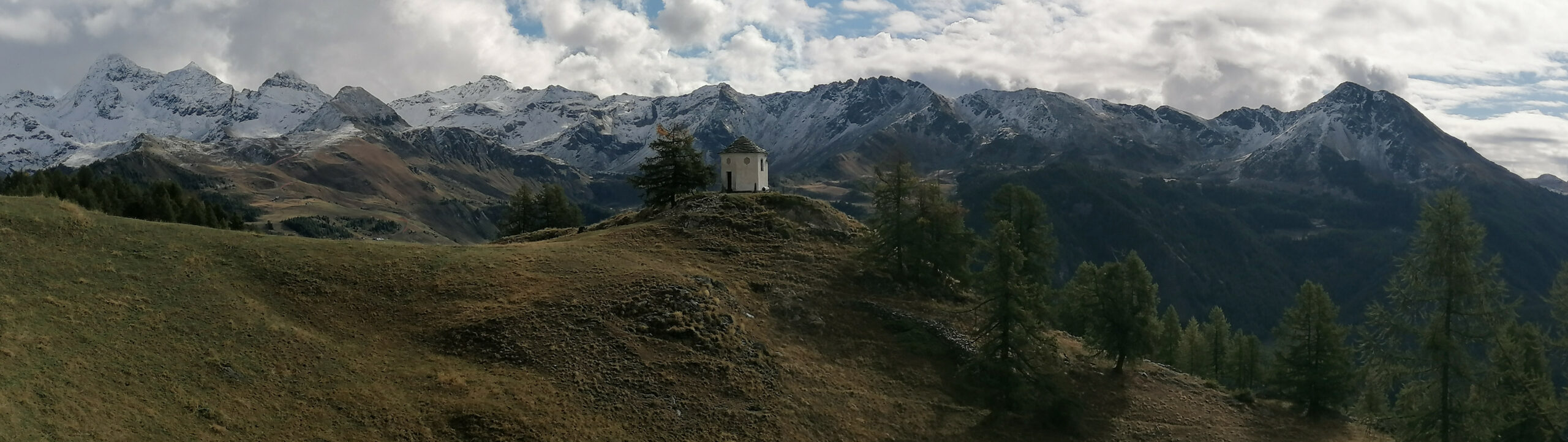 All’inizio della strada si trova una palina con l’indicazione dei sentieri tra cui il “n.12B Oratiorio di Gilliarey”, e in breve si raggiunge la chiesetta di Chatelar 1790m dove proseguendo sull’evidente sentiero si raggiunge l’alpe Chatelar superiore 1874m e poco prima all’altezza di un presa d’acqua si trova la palina indicatrice del sentiero n.1 e a terra l’indicazione del sent n.105 (si svolta a dx, direz nord) e si percorre la sterrata che in falsopiano porta a raggiungere un bivio a quota 1905m. Al bivio dove è presente una palina indicatrice occorre seguire l’indicazione a terra del sent n.105 (trascurando il n.1 da cui rientreremo) si scende al vicino alpeggio Betsolaz 1895m e si raggiunge un ponticello superato il quale sulla sx si trova una successiva palina del sentiero n.7 per Gillierey. Si abbandona la poderale per salire il sentiero e raggiungere una ampia raduna e tenendosi a dx a bordo del bosco si sale a raggiungere la bella e moderna alpe Comiana 2040m. Percorso (sulla sx) un brevissimo tratto della poderale sulla dx (segnalato da omino) sale il sentiero, con tacche gialle sugli alberi, che attraversa il bosco e porta ad incrociare nuovamente la poderale ormai in vista dell’Oratorio di Gillierey 2174m e del gruppo di baite. Visitata l’area e goduto dell’ampio panorama si ritorna alla poderale riscendendone un tratto ad incrociare ad un tornate uno sterrato sulla dx 2180m che in falsopiano direzione nord nord ovest sino a trovare sulla dx 2220m l’indicazione del sentiero n.ex13 che porta in breve alla Finestra d’Ersa 2298m.