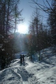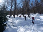 Lasciato ponte Maira con direzione sud si giunge a la Grangie Rossetto 1526 mt., si prosegue seguendo i corridoi che si aprono nella pineta lungo il Rio Ciarbonet, lasciando sulla sx il Rio Selletta.