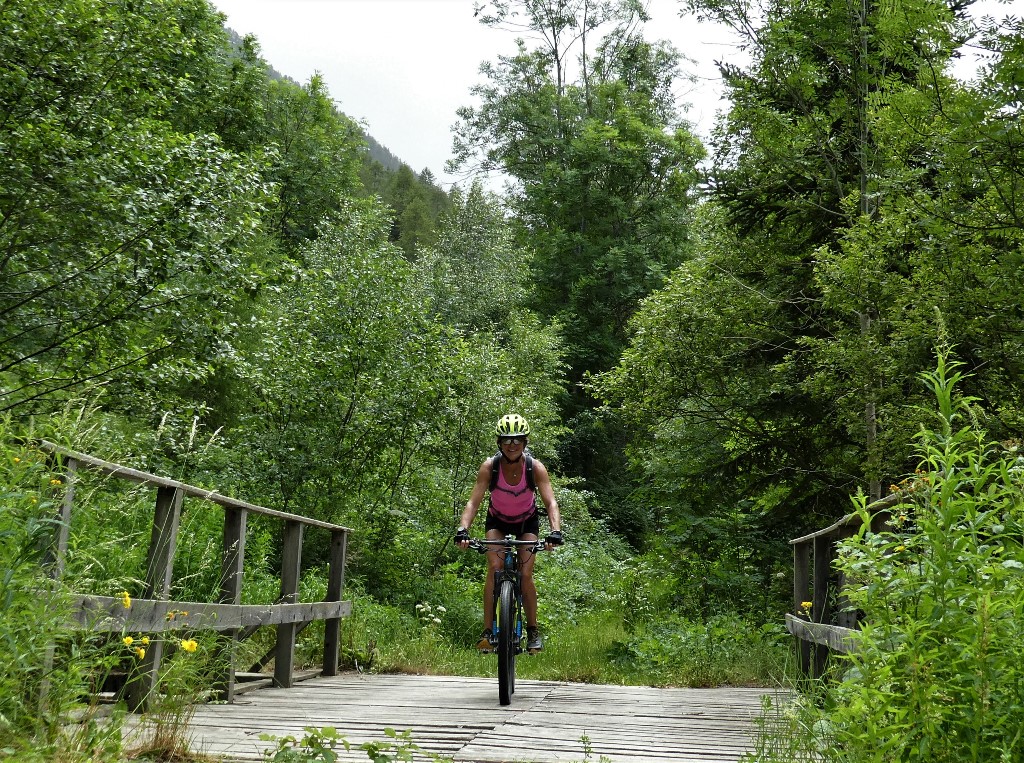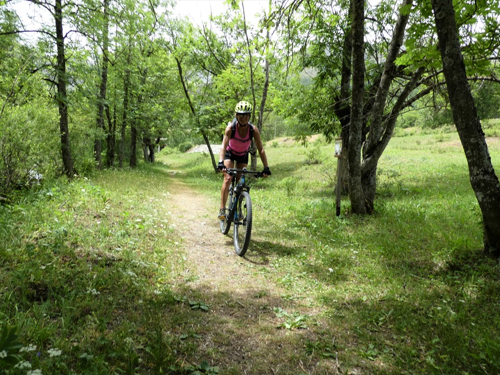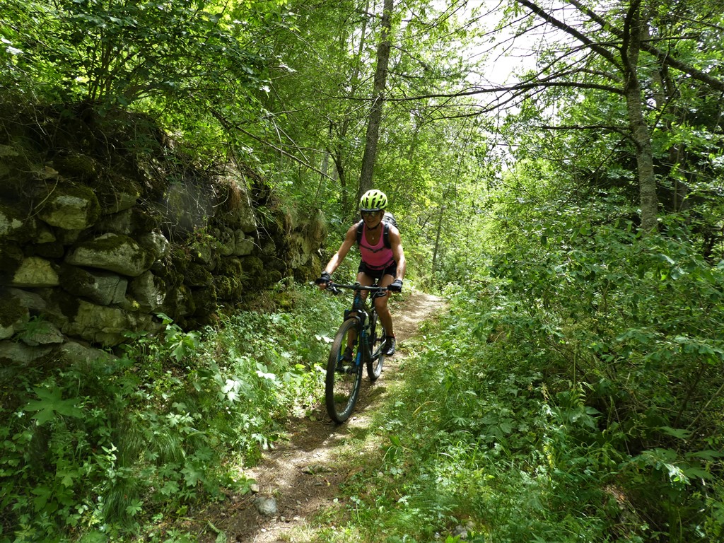 Con Silvia, brava sul sentiero da Vivere a Frere con la sua front.