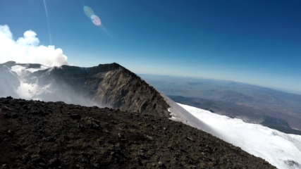 Prima giornata di sci sull’Etna, dritti al Cratere. Giornata eccezionale, cielo sereno, venti deboli, temperature fredde. Troppo fredde per i versanti nord, neve che non ha mai mollato, nemmeno nelle contropendeze, se non negli ultimi 300 metri di discesa. Divertenti in ogni caso gli ultimi canaletti con neve dura ma lisci e grippanti.