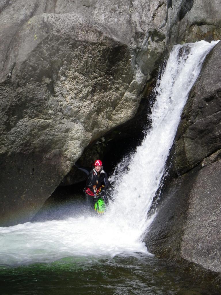 Portata notevole superiore ai 200 l.s.Abbiamo dovuto aggirare un paio di cascate per la troppa acqua.Giornata quasi estiva 29 g. Acqua freddina ma con la muta e i guantini leggeri si stava benissimo.
