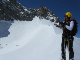Bellissimo itinerario ad anello, la neve inizia a quota 2300, noi percorso il canale a piedi fino sotto il rifugio poi calzati gli sci fino alla crepaccia terminale dove abbiamo proseguito a piedi fino in vetta. Discesa su ottima neve fin quasi ad Arolla.