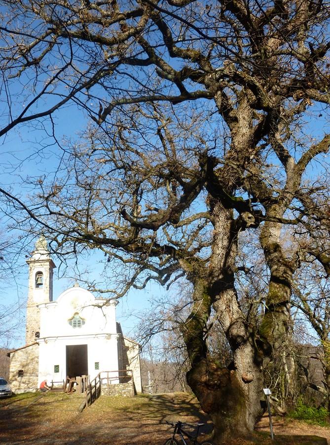 Si scende e si imbocca una bella sterrata che porta al Santuario della madonnina con il suo albero monumentale , dopo la visita che è d’obbligo si continua a salire e si guadagna per sentierini e per prati con un po’ di portage il Pizzo d’Evigno a salutare l’altra madonnina .