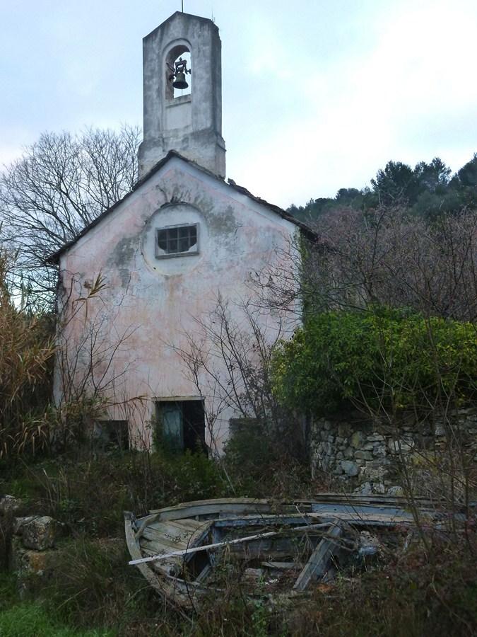 Appena dopo l’abitato di Cervo , dove c’è la scalinata parcheggio e un ponte in pietra si prende il sentierino che sale proprio passando sul ponticello e si continua in mezzo alle case e alle cisterne in disuso sino ad arrivare alla strada superiore .