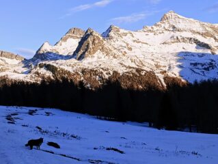 Giornata limpida e tiepida, pochissima gente in giro. In partenza da Mandriou la neve scarseggia, comunque ce n’è un po’ di più che da antagnod. Passaggio dall’alpe Metsan (agriturismo chiuso) e parte alta più dignitosa, abbastanza portante ma molto segnata. Discesa pomeridiana su neve beton e poco portante. Comunque senza aspettative se non la bella giornata, panorami e ottima esposizione