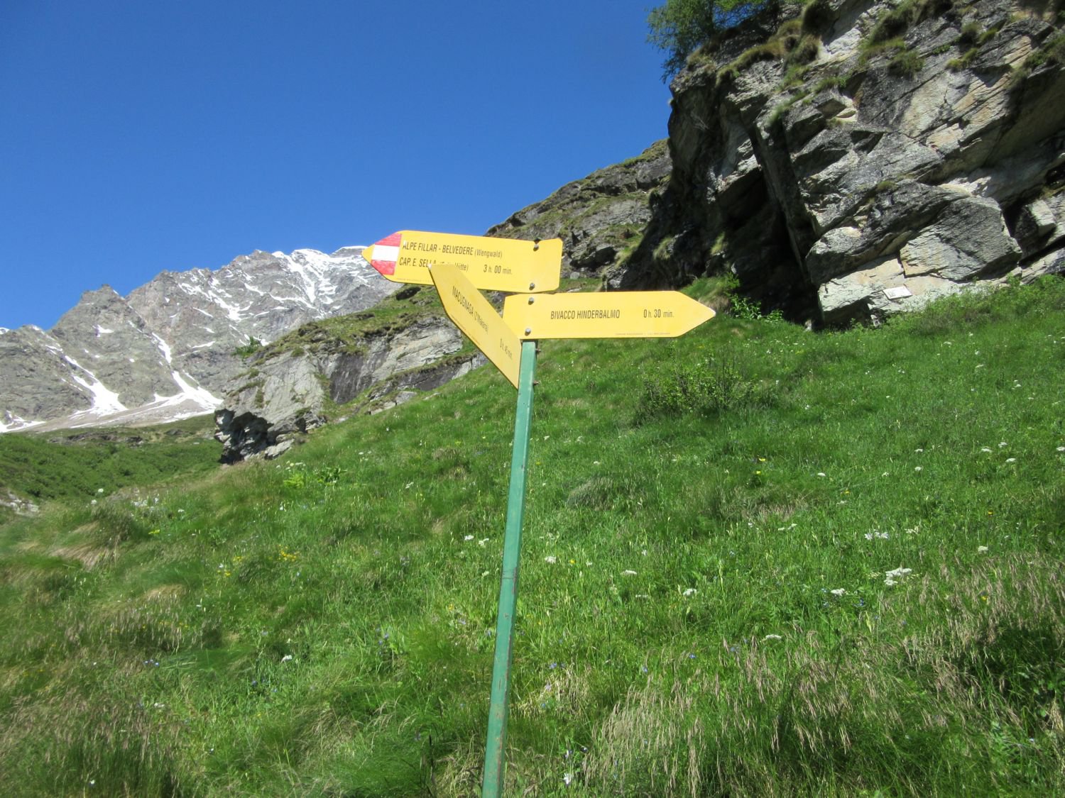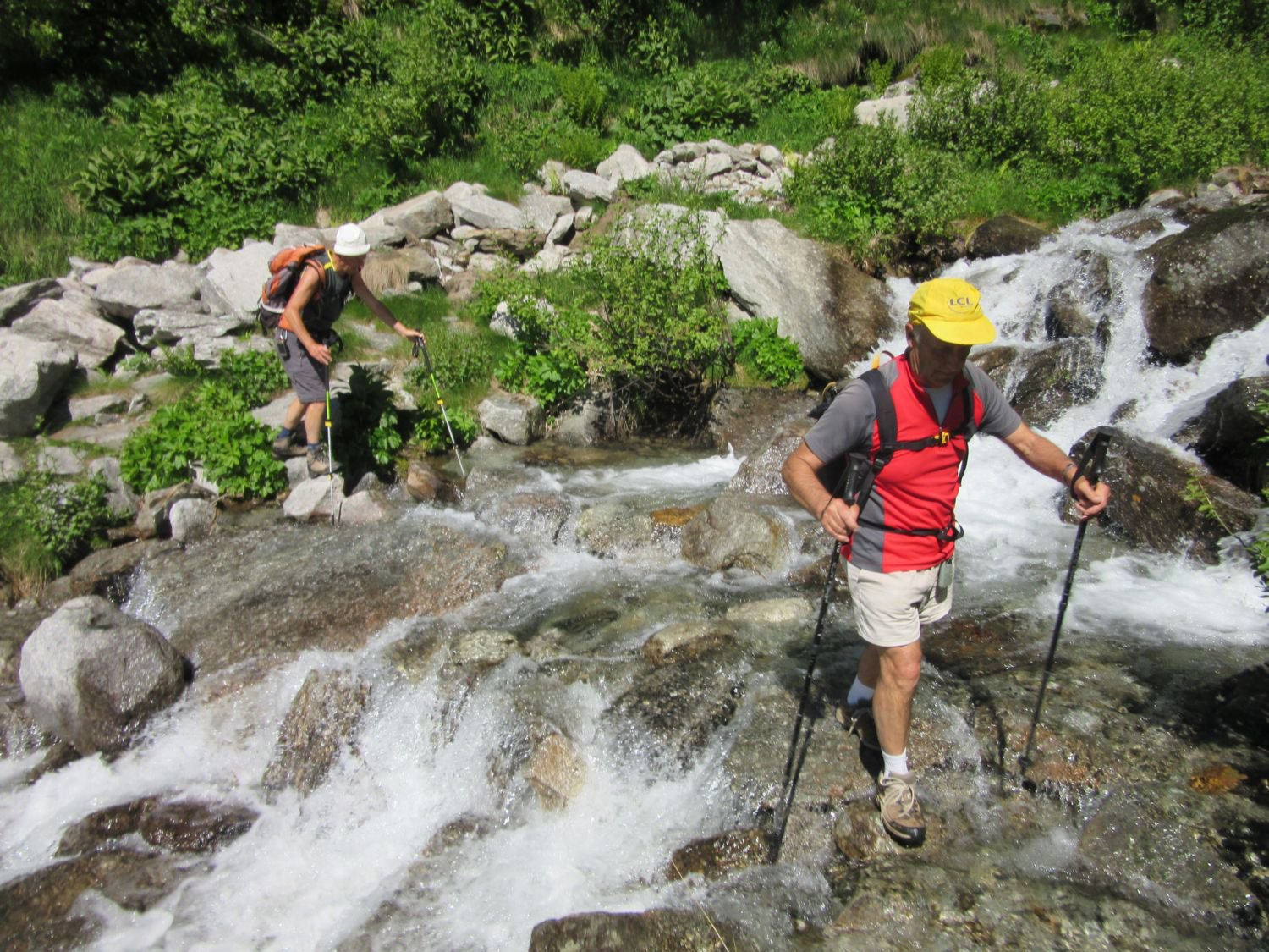 Ho scelto una “tranquilla” gita per il rientro con gli amici dopo oltre 45 gg.di pausa. Il sentiero mi ha messo subito alla prova fin dall’inizio quando si sale su pendii ripidi passando vicino ad una cascata fino al bivio per la capanna Sella. Il sentiero prosegue a mezza costa con saliscendi e si devono attraversare 4/5 corsi d’acqua che al ritorno abbiamo trovato ben gonfi e abbiamo dovuto mettere i piedi a mollo!! Arrivati al bivacco (in stupenda posizione) abbiamo proseguito per la punta. Le mie gambe non allenate diventavano sempre più dure tanto che ho lasciato proseguire i compagni e sono salito con passo molto più calmo. Arrivato a ca 2460 m. c’era da attraversare un nevaio ma i crampi mi hanno consigliato di fermarmi in compagnia di Pier Albino. Giorgio ha proseguito sino alla panoramica ed aerea croce. Eterna anche la discesa …