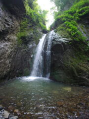 La prima parte di torrente è abbastanza discontinua e può essere parzialmente evitata sulla destra. Poi alternanza di brevi verticali e tratti in libera, con qualche bel toboga e un 2-3 salti bassi ma sempre da controllare.