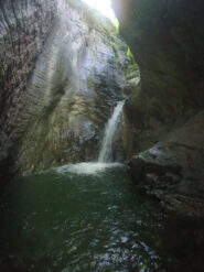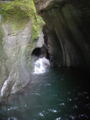 Tratto finale più divertente, a partire dal passaggio sotto a un caratteristico sasso incastrato per poi passare a diverse verticali suggestive, attenzione sulla penultima calata a passare al di fuori del sasso incastrato nel toboga.