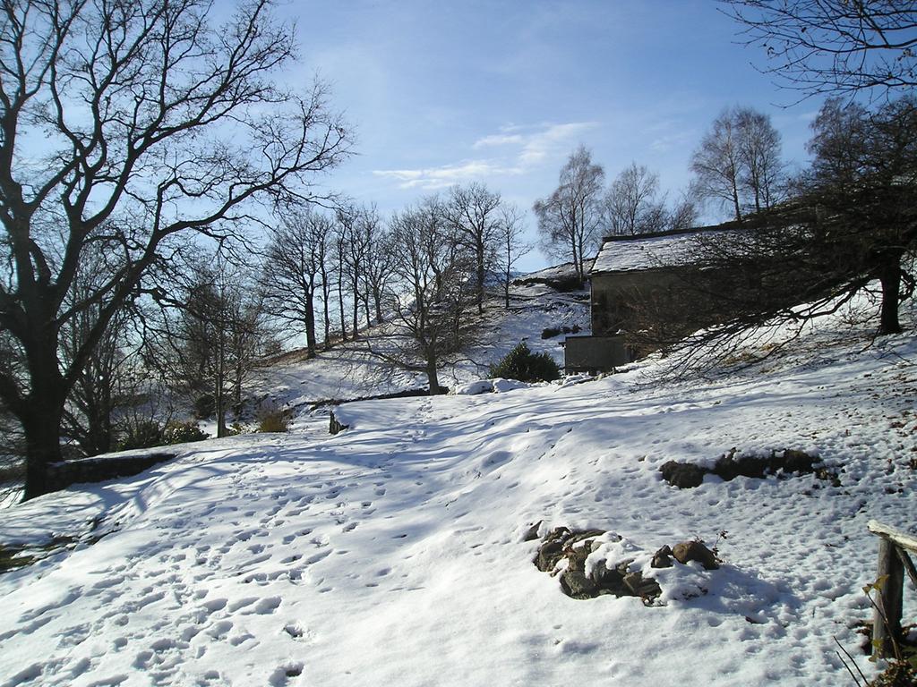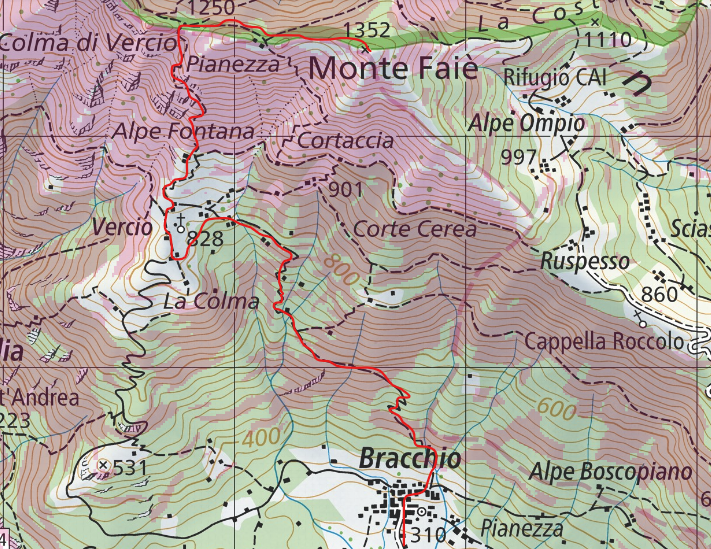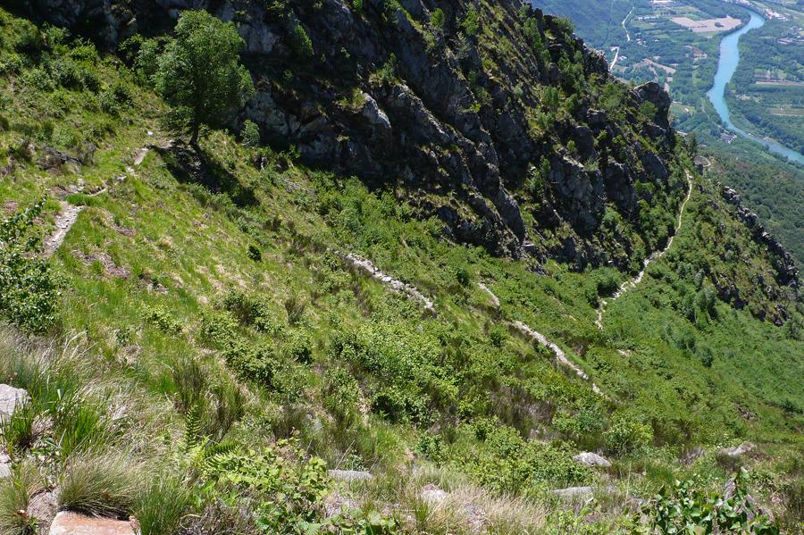 Dopo un’oretta si raggiunge il gruppo di case dell’Alpe Vercio. Dietro la costruzione dell’Eremo si punta ad un serbatoio dell’acqua presso cui inizia un sentiero che risale lungamente il boscoso versante del Fajè per poi sbucare su una cengia erbosa che si segue verso sinistra.