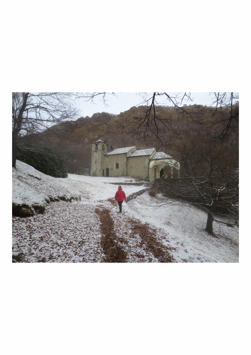 Nei pressi della Chiesa iniziano i segnavia che risalgono una bellissima mulattiera nel bosco (ad un bivio all’inizio seguire le indicazioni a sinistra).
