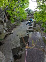 Fare scivolare la corda in quanto il salto è strapiombante!