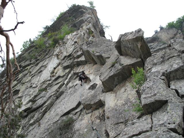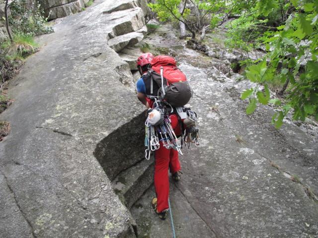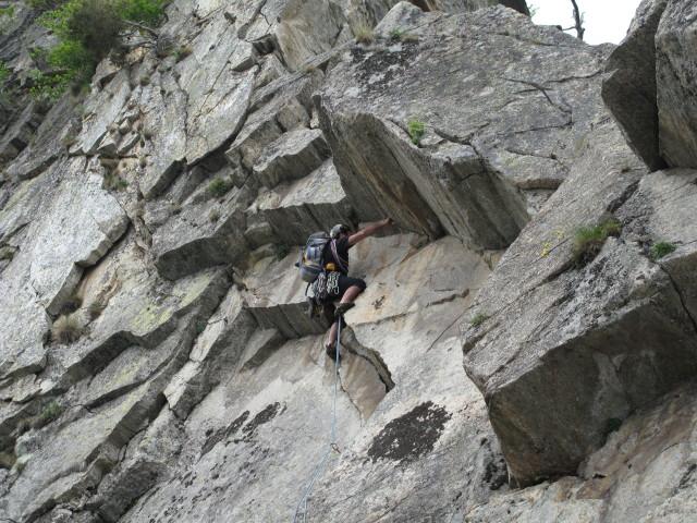 Dopo circa 10 anni torno a rifare questa salita, che ricordavo non banale, ottimo allenamento x preparazione x salite in montagna, qualche tratto umido, come si è gia detto utili dei friend,nei passaggi impegnativi se si fà attenzione c’è tutto, dalle fessure, maniglie dei piccoli appigli, comunque non è da sottovalutare, fatta a tiri alterni con il mio socio Andrea che era da tempo che aveva espresso il desiderio di effettarla, stanchi x la salita, ma sopratutto la discesa dal canale che porta sulla pietraia non è stata piacevole per il terreno umido e molto scivoloso, però ci siamo divertiti ciao