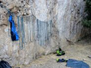 Nb: al settore destra, a tratti strapiombante e con un pelo di “copertura” si può scalare anche in caso di brevi temporali.