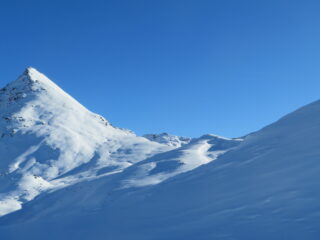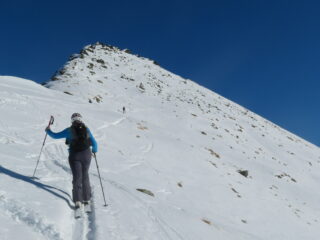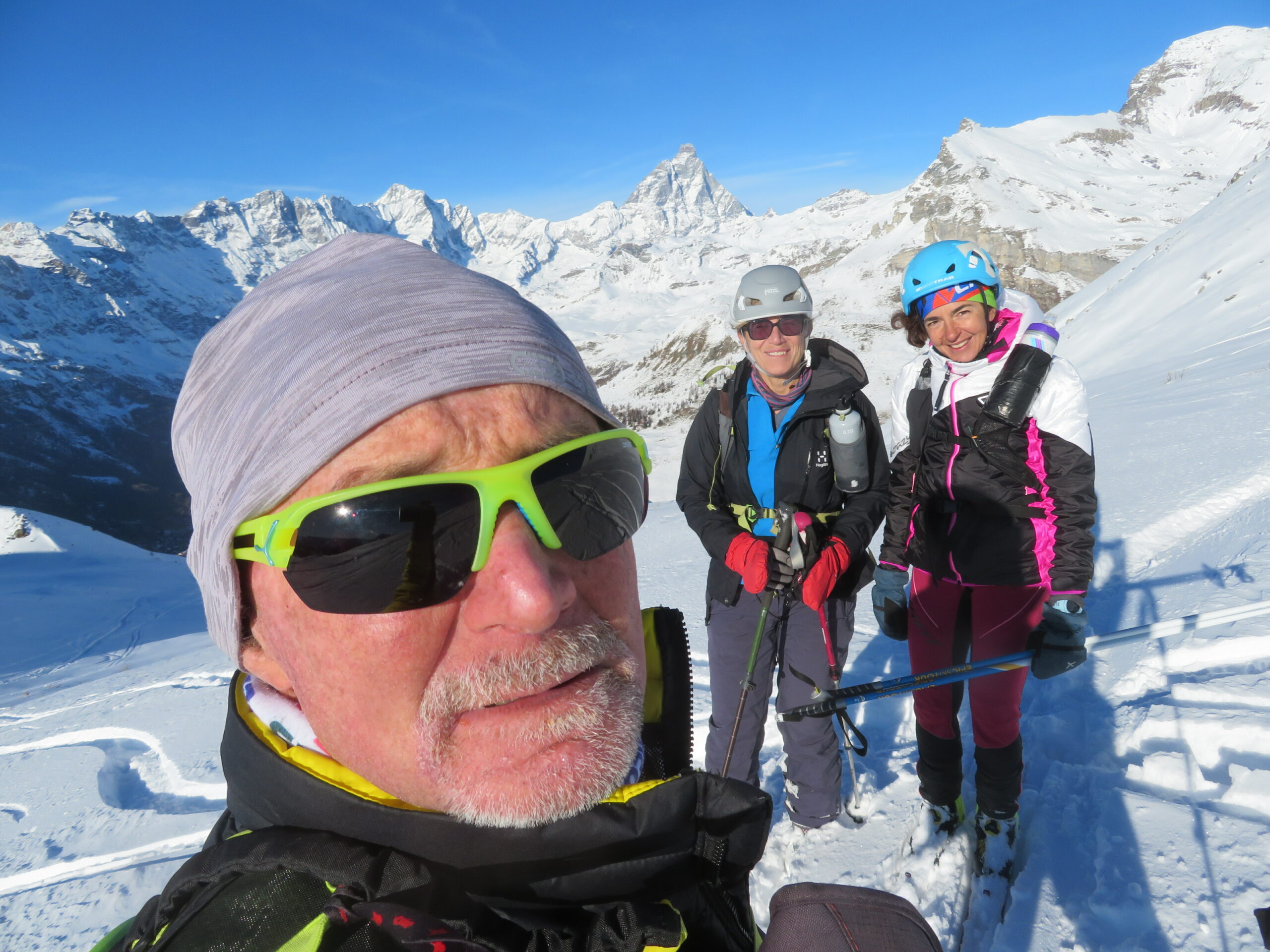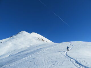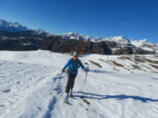 Partiti da Chamois a fianco delle piste. Poi al Santuario Clavalitè e dorsale fino in vetta. Nella discesa dalla vetta la neve non è molta ,ma è portante. Poi c’è un tratto di polvere fino al Santuario. Poi piste fino a Chamois