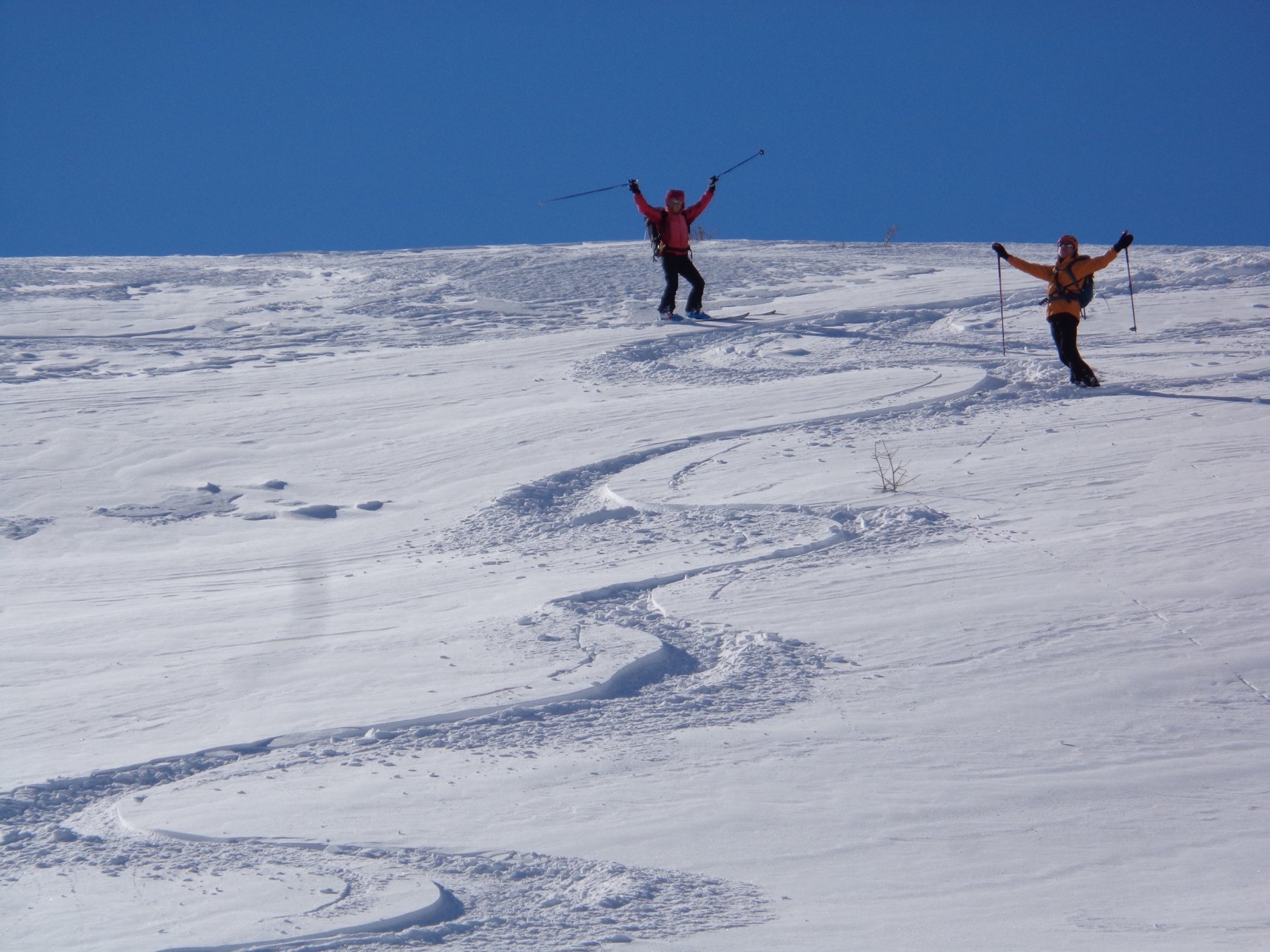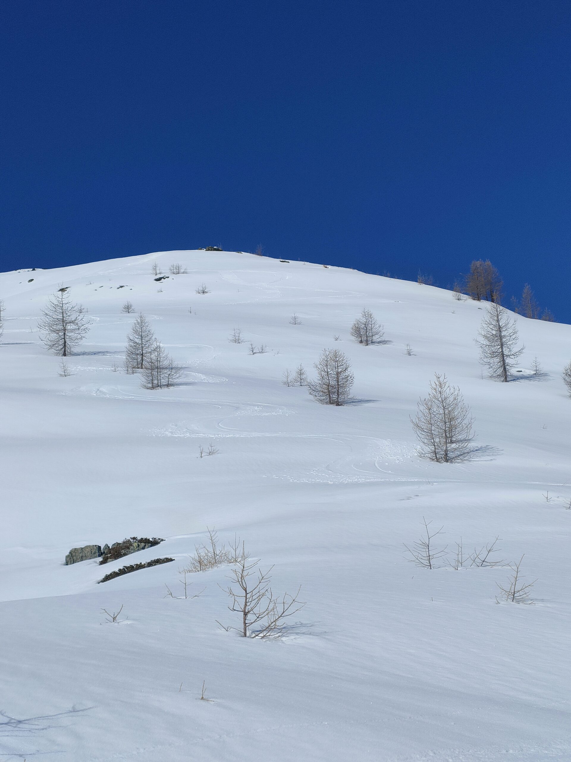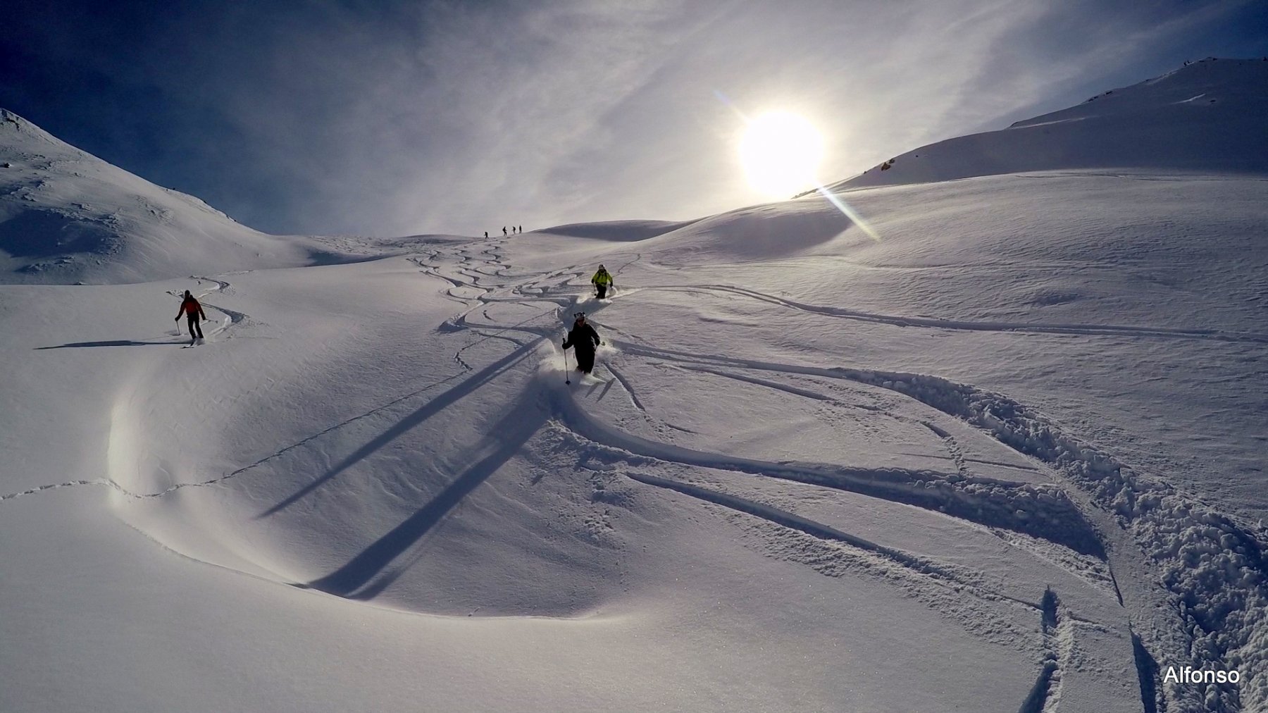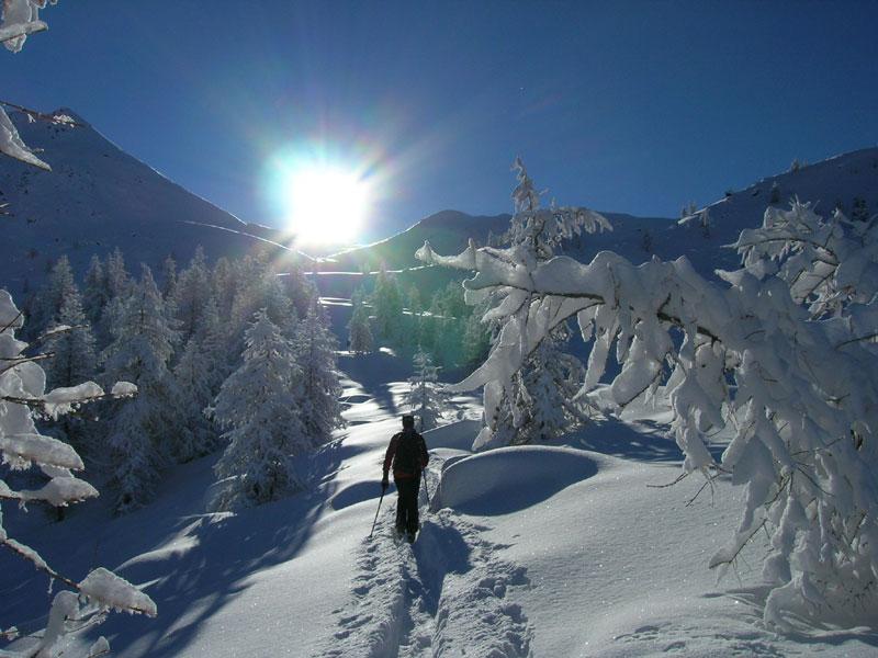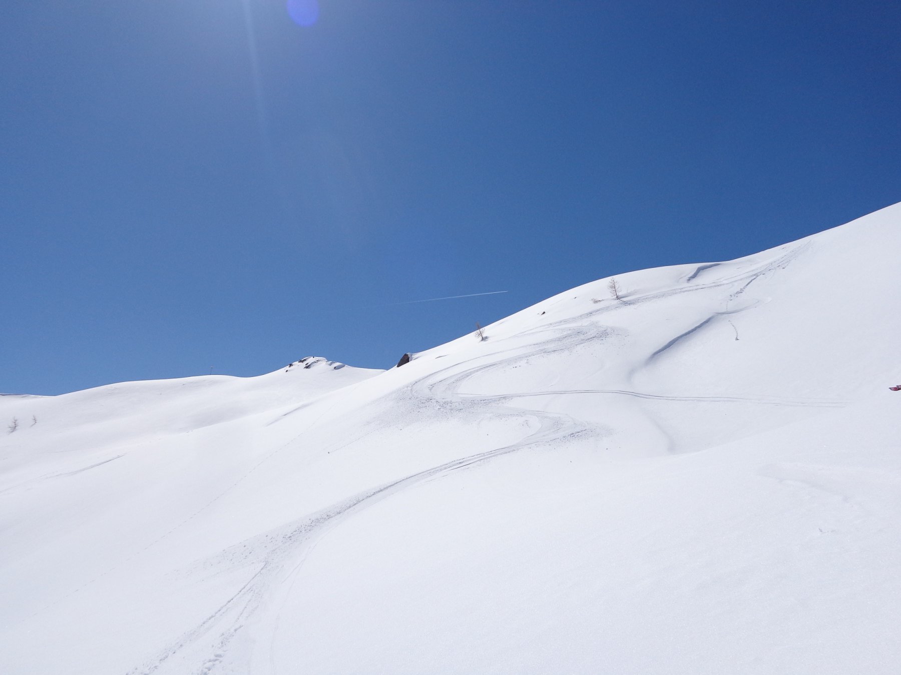 La discesa avviene per la via di salita con numerose possibilità di varianti dal Colle di Fontana Fredda fino a Cheneil.