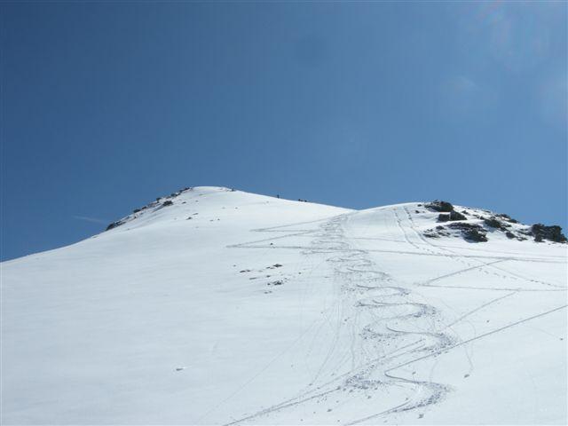 partiti per fare la Roisetta abbiamo rinunciato perchè alle 6 pioveva e in alto nevicava e cosi ci siamo buttati di qui…abbiamo salvato la giornata sul pendio finale che aveva 5 centimetri di neve appena caduta…
