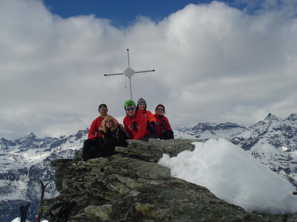 Giornata un po’ troppo calda per la stagione. Dopo aver salutato i cavalli di Cheneil abbiamo raggiunto senza problemi il colle seguendo una traccia preesistente. Qui abbiamo messo i rampant, necessari per affrontare con sicurezza il ripido pendio finale. La vetta è stata raggiunta sci ai piedi. Abbiamo quindi affrontato il primo tratto di discesa a piedi, lungo la cresta, a causa delle fratture del manto nevoso che potevano creare problemi. Dall’anticima al colle neve primaverile di discreta qualità. Dal colle in giù, a seconda dell’esposizione, crosta non portante o neve molto pesante che si sfondava al passaggio con gli sci. Nel bosco situazione non migliore. Basti dire che le curve più belle le abbiamo fatte lungo la stradina che porta al parcheggio, dove fortunatamente le pietre risultano ancora ben coperte.