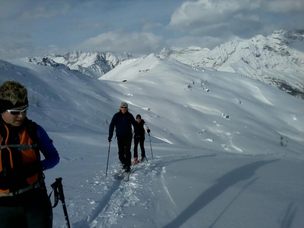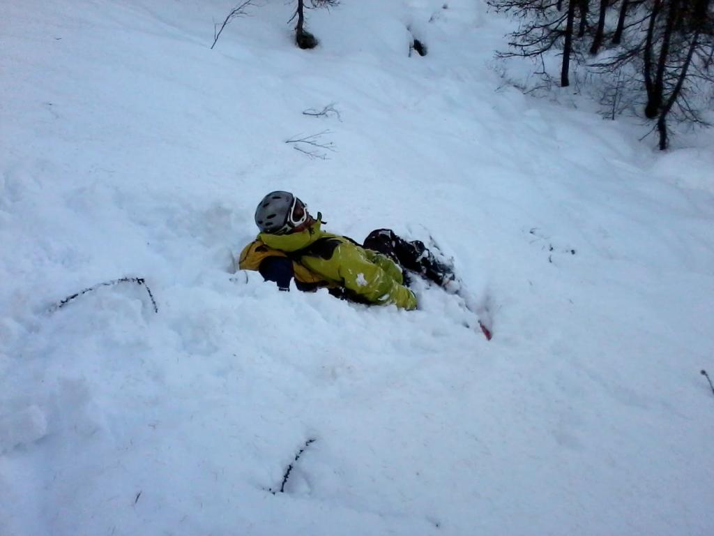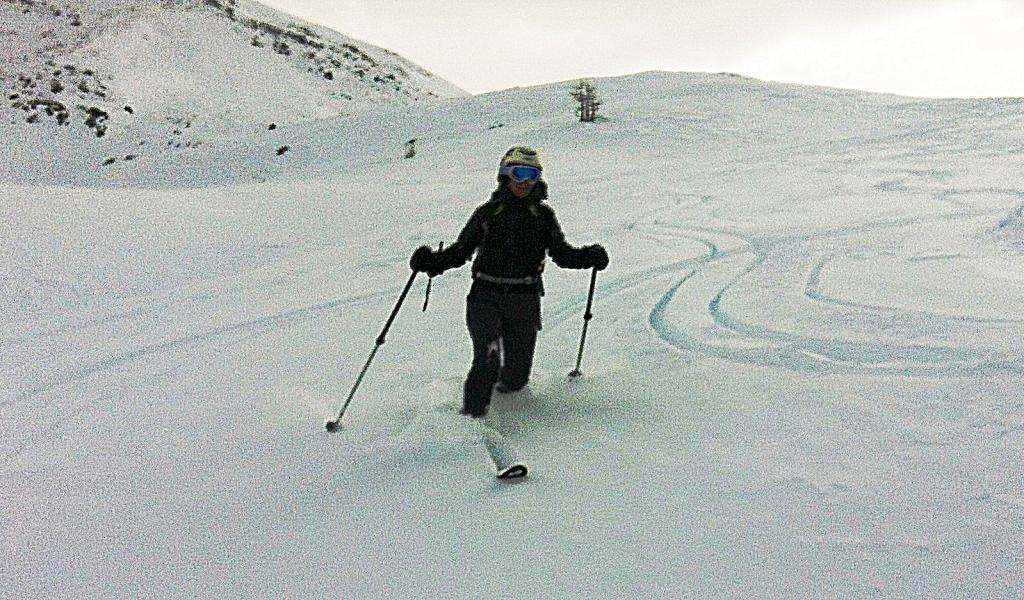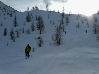 Oggi temperatura elevata, la neve si e’ mantenuta abbastanza bene nella parte alta ma molto lavorata dal vento ed a tratti sfondosa,, la parte intermedia si e’ rivelata la migliore, con neve farinosa, mentre nell’ultima parte neve molto pesante.
