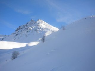 Neve polverosa spettacolare fino al colle, farina abbondante non rovinata dal vento e migliorata grazie ad una notte finalmente fredda il giusto. Max valutazione ma solo fino a 2600, poi eolo ha distrutto tutto. Trincea ottima e quasi sempre portante, negli ultimi 50m prima del colle la neve diventa prima pressata e poi ottima crosta potante fino alla gobba 2600 prima del tratto ripido di cresta. Da qui a piedi per la falinere, niente traccia, ramponi molto consigliati, neve a tratti sfondosa a tratti marmo, che comunque non sarebbe stata sciabile. Consigliabile seguire le roccette appena affiorano, sono più agevoli anche se vicino ad esse la neve è completamente inconsistente e profonda. Adesso almeno le peste ci sono! Discesa stupenda su pendii poco tracciati, neve ottima specialmente nel bosco rado. Arrivato quasi alle baite, retrofront fino al colle per il secondo giro! pochi skialp da questo lato, un solo monoasse e molti ciaspolatori, c’è ancora parecchio da tritare. salut e auguri