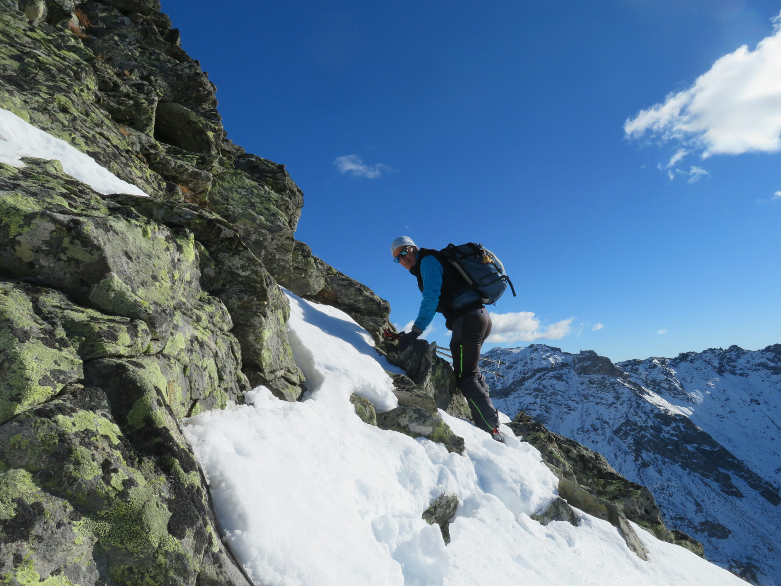 Neve dura. Si sale sci ai piedi fino alla spalla e all’anticima. Poi a piedi. Neve poca , ma più che sufficiente in basso. Dal colle all’anticima davvero poca sia per salire che per scendere sci ai piedi (ma a noi Appenninici basta e avanza).