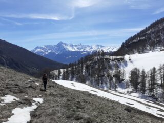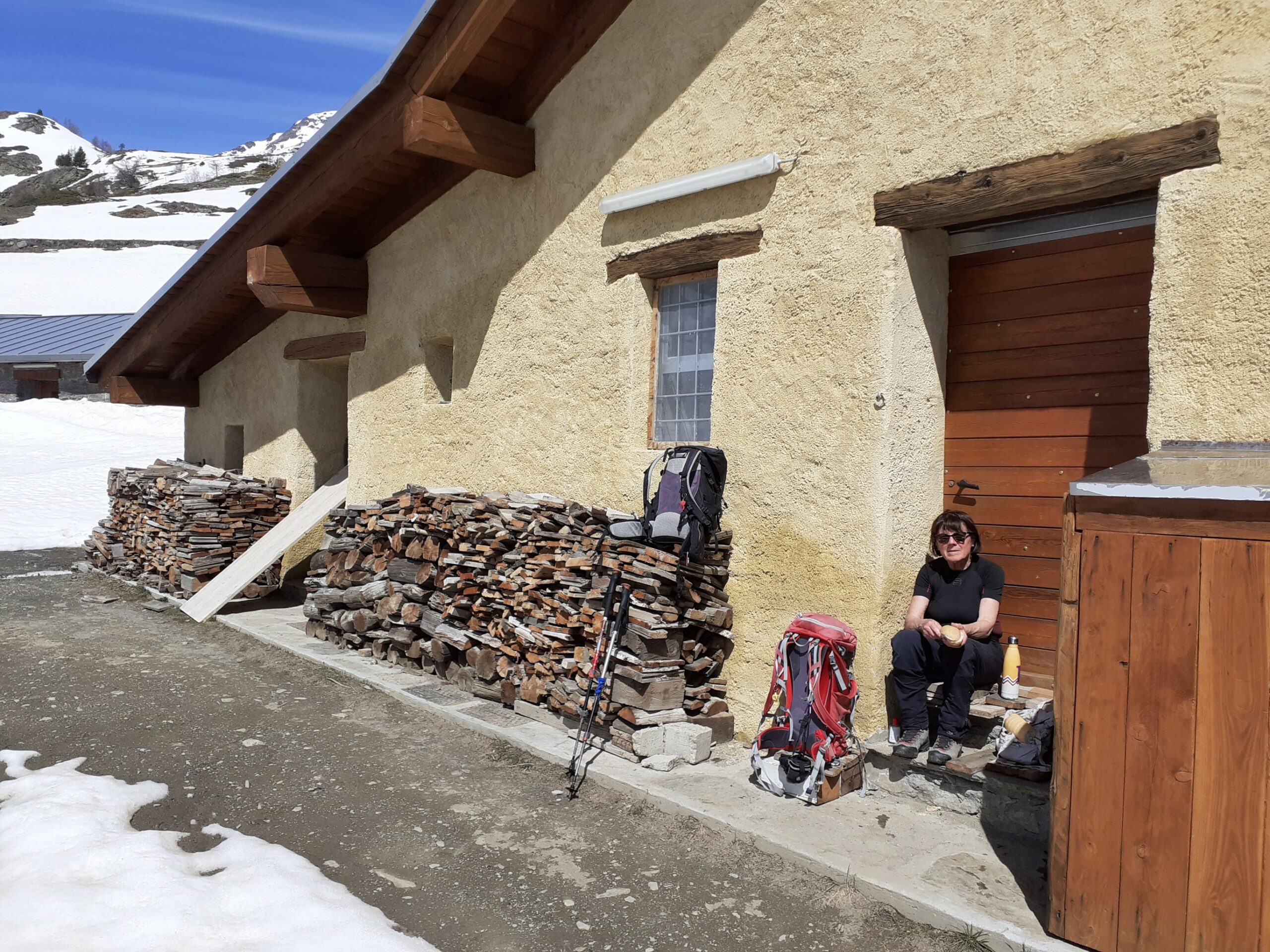 Siamo partiti da Thouraz facendo la strada; la prima parte è senza neve ma, dopo aver trascurato il sentiero estivo sulla destra, incomincia ad essercene; abbiamo abbandonato la strada e, per prati, siamo giunti all’Alpe Morgnoz recentemente ristrutturata. Qui ci siamo fermati visto la neve presente.