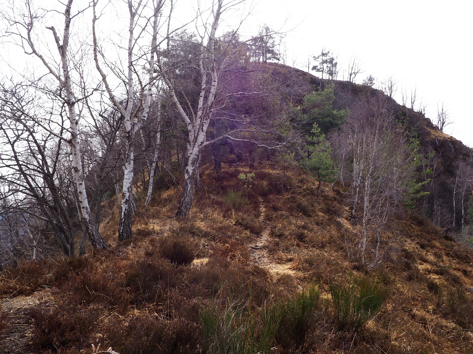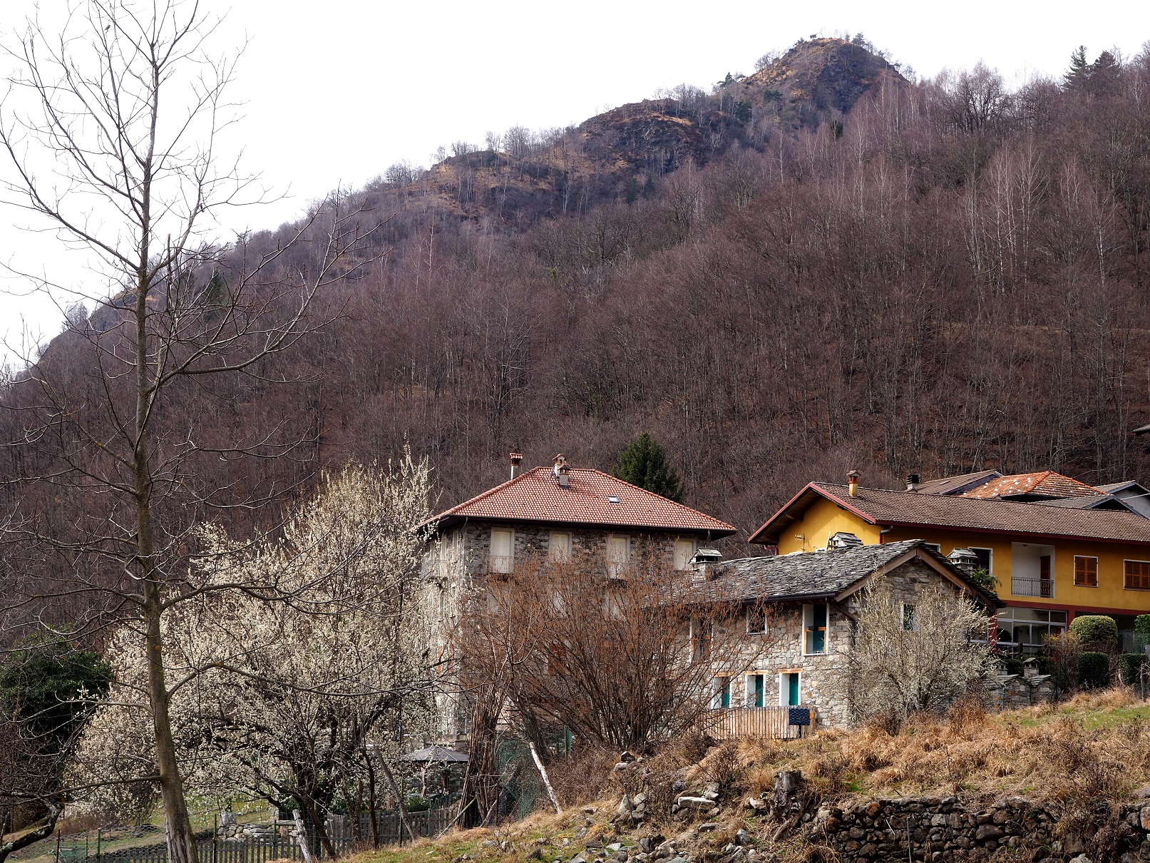 Dal parcheggio si ritorna verso la chiesa parrocchiale ma, appena prima di raggiungerla, si prende la mulattiera a sx (segnavia 572). Superate le case del paese, si entra nel bosco e si percorre l’evidente sentiero che transita nei pressi di numerosi edifici rurali, per la maggior parte in cattivo stato. Giunti alla spianata del Prà della Sella, si abbandona momentaneamente il sentiero e si sale a dx su traccia all’inizio molto incerta, poi decisamente più evidente, in direzione di una zona rocciosa che si aggira stando lievemente a dx. Ci si porta sulla cresta, ora pianeggiante, per poi affrontare l’ultimo ripido ma breve strappo che conduce alla panoramica sommità (m.1055, 15′ dal Prà della Sella, 1h 20′ dalla partenza). Tornati al sentiero, si prosegue su tracciato ora un po’ meno evidente e ostruito in alcuni punti da alberi caduti, fino alle Case di Colla, dove si lascia a dx una prima diramazione del sentiero 572a per proseguire diritti e giungere in breve a Sassello. Si scende per pochi metri la strada asfaltata che raggiunge il borgo e a un tornante si prende a sx una sterrata sbarrata da una catena che in breve ci porta a raggiungere il Santuario della Madonna del Tizzone, meta di pellegrinaggi. Tornati brevemente sui nostri passi, si scende a sx (cartello) raggiungendo in breve dapprima Brugaro e poi Brugarolo. Entrati in quest’ultimo abitato, si prende a dx il segnavia 573 per Giavinali (Cravagliana). Si procede nuovamente nel bosco alternando tratti pianeggianti a brevi strappetti, su tracciato incerto e infestato da numerosi alberi caduti, superando anche un punto in cui il sentiero è franato, fino a giungere in una zona dove si passa tra alcune piccole pareti rocciose. Un’ultima salitina porta a un punto più aperto da dove in breve si scende al Laghetto di Cravagliana, in realtà poco più di una pozza. Si prosegue in marcata discesa all’interno di un canalone erboso oramai in vista di Cravagliana, per poi andare a dx su terreno ora decisamente meno impegnativo e portarsi sulla SP9 della Val Mastallone nei pressi delle case di Giavinali. Si risale la provinciale per 300 metri e si torna all’auto. Tempo complessivo 3h 30’/4h; difficoltà E/EE.