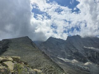 Subito dopo il colle non bisogna farsi tentare da una traccia di sentiero e individuare gli ometti sulle roccette di cresta. Seguendo, come ho fatto io, il sentiero ci si trova poi in mezzo a grossi massi che fanno perdere tempo, senza però nessun pericolo.
