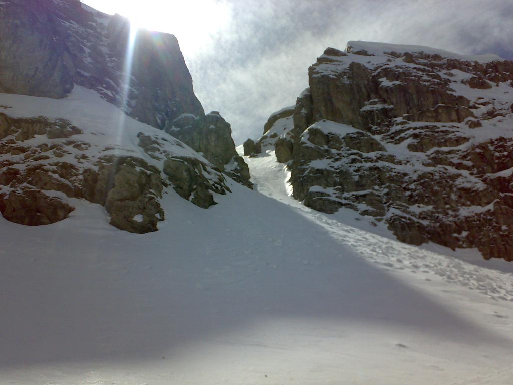 ciao a tutti in pratica ci sono state le stesse condizioni di ieri pero’ sono sceso dal canale del cross con una spolverata di neve fresca su fondo duro. un saluto a paolo incontrato durante il percorso e al gruppo di francesi tutti molto simpatici