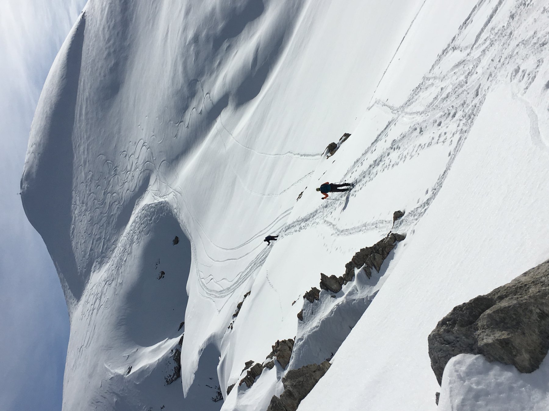 Come quor56. Aggiungo solo che nei pendii intorno ai paravalanghe il rialzo termico e probabilmente l’umidità hanno formato una leggera crosta non portante, mentre più in alto c’è ancora farina (anche se un po’ compressa).