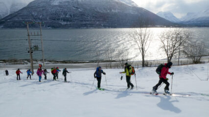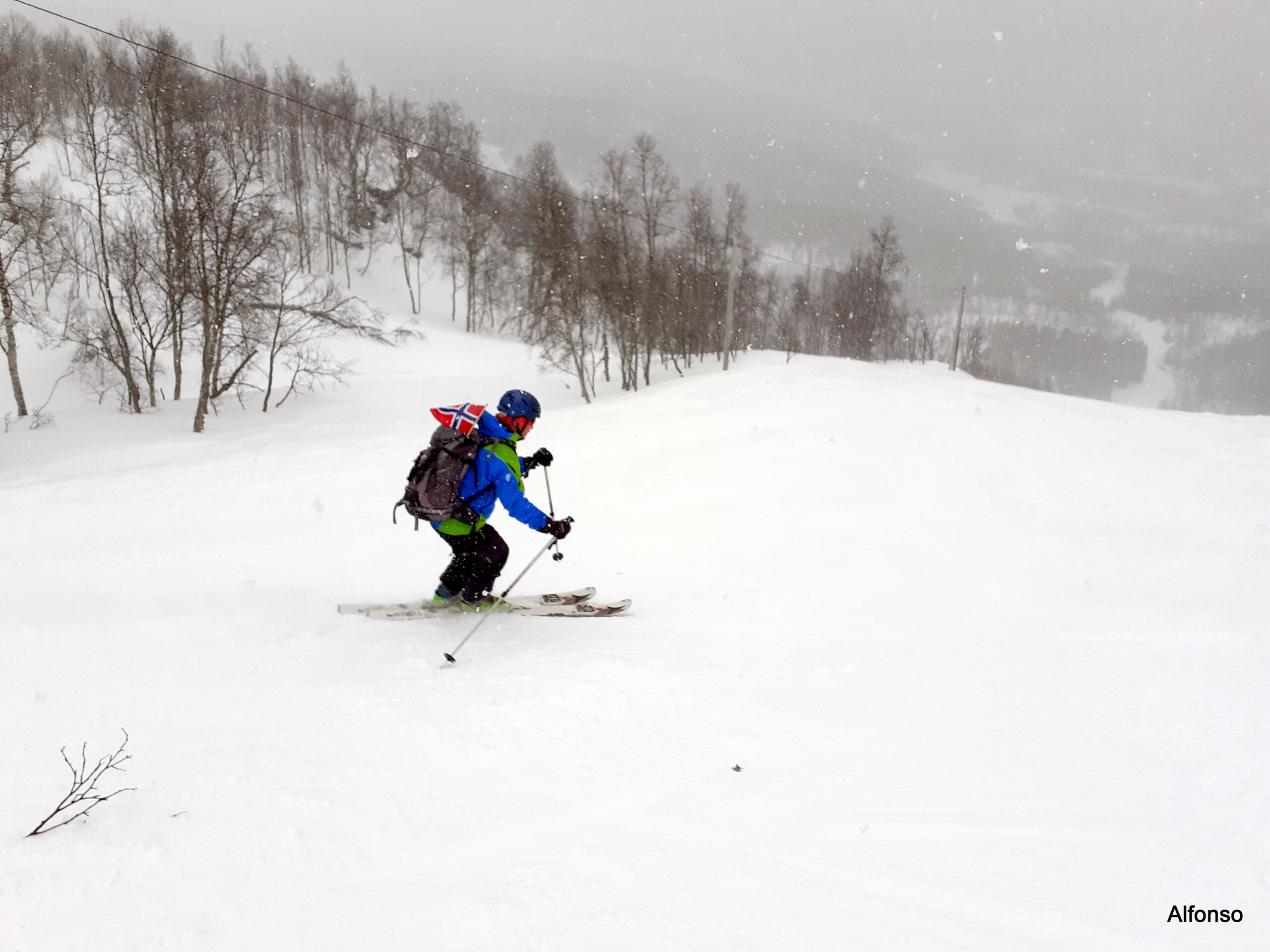 Partiti per un’altra meta (Rieppetinden), un pò per le condizioni un pò per il meteo ci siamo rigirati dopo 100 metri e ci siamo rimessi in auto optando per questa salita. Cima non raggiunta, fermati 200 metri prima per la scarsa visibilità, la tormenta e il vento polare; neve bella ma discesa col gps in mano!