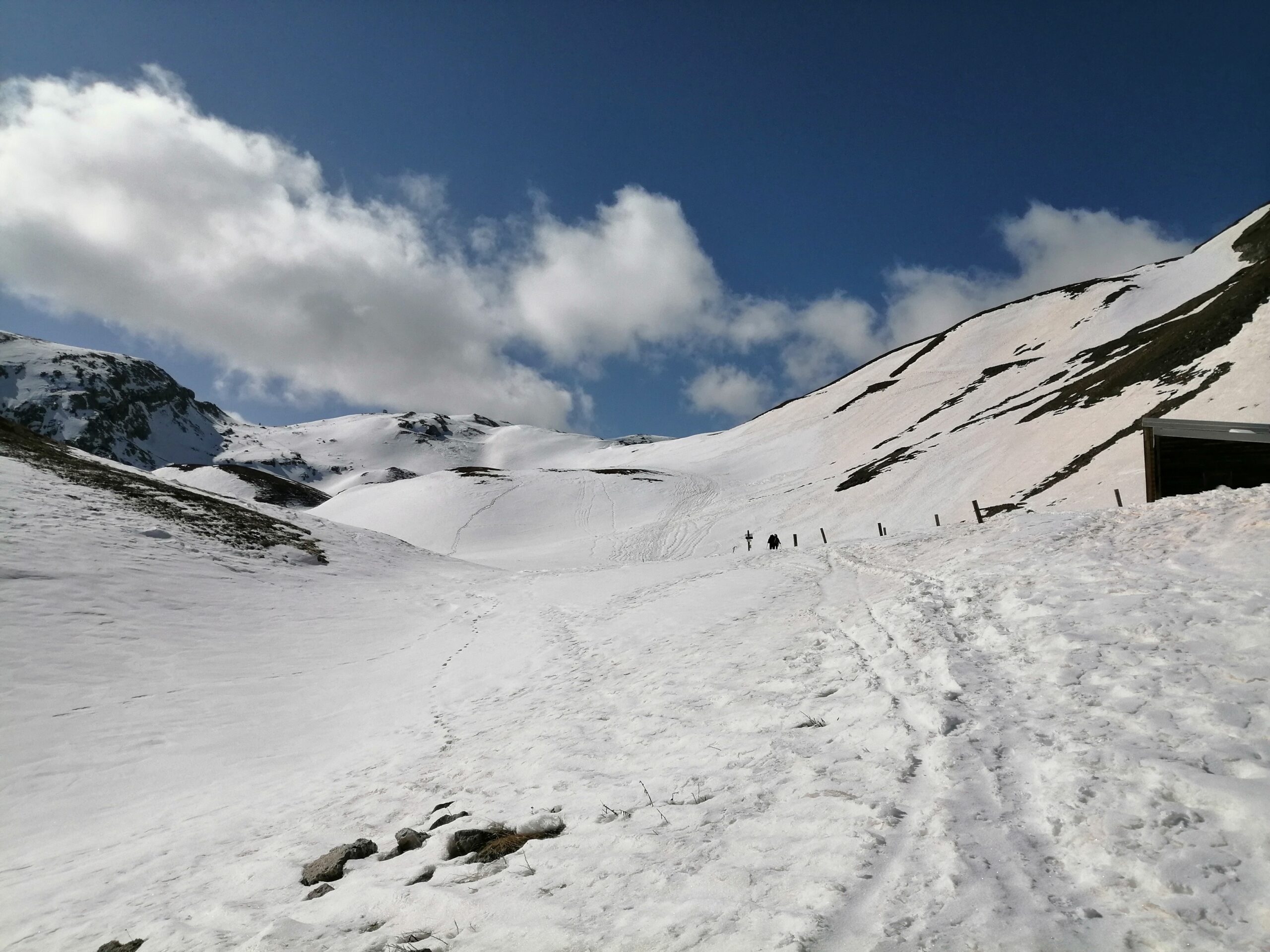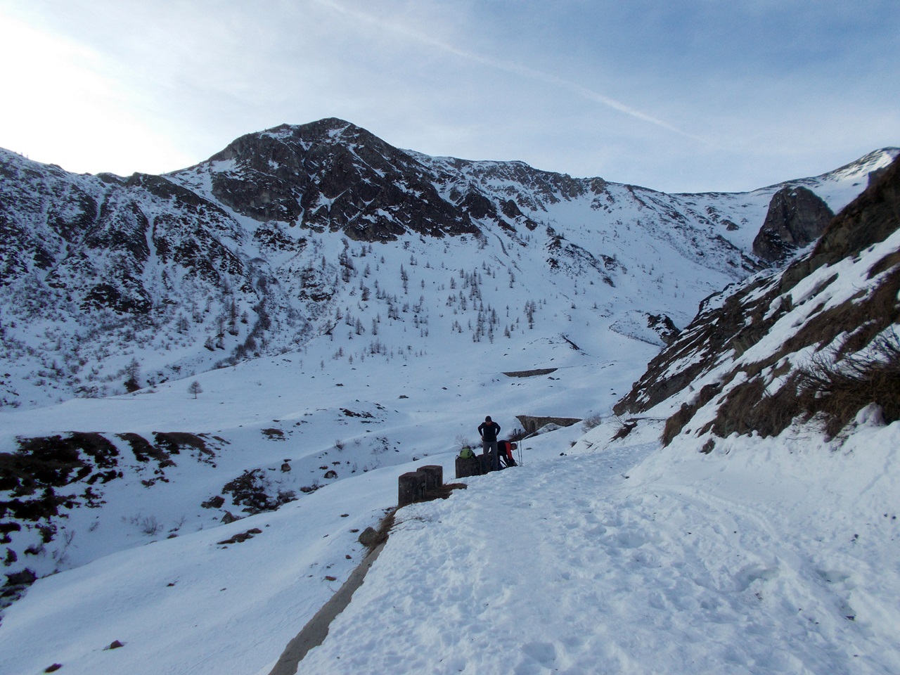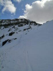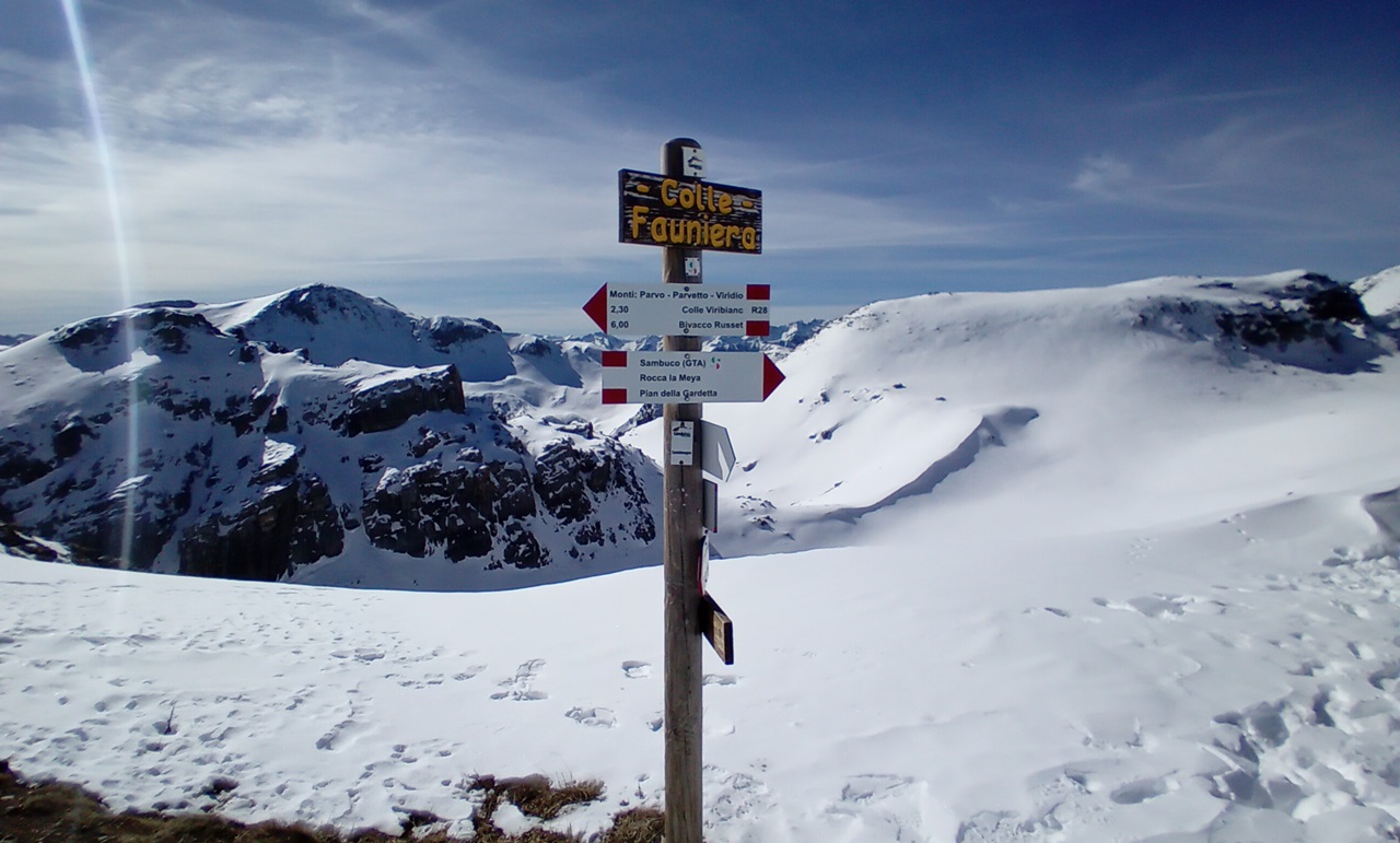Dal Santuario di Castelmagno si segue la strada che porta al colle d’Isischie e a quello dei Morti (o Fauniera), qusto tratto e’ da farsi solo con neve sicura in quanto soggetto a numerose valanghe dai canalini sovrastanti. Si arriva cosi ad un grangia posta sotto la Rocca Parvo. Si abbandona la strada e si prosegue al centro del vallone fino ad arrivare al rifugio Trofarello (chiuso) sotto la Rocca Negra.