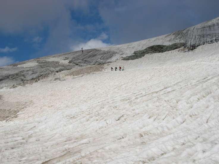 E’ stato veramente piacevole ritornare, ancora in compagnia di Fausto (oltre a Marta e Piero: bravissimi!), tanti anni dopo la nostra salita alla Barre des Ecrins, anche se lo stato del ghiacciaio è decisamente cambiato. Siamo saliti dal Refuge Glacier Blanc (ambiente simpatico e confortevole) con dislivello e, soprattutto, spostamento considerevoli. Abbiamo trovato alcuni tratti di ghiaccio vivo sul pendio che porta in cresta. L’ultimo tratto roccioso che conduce in vetta, anche se non difficile, è decisamente esposto ed in alcuni tratti anche aereo. Munirsi di fettucce lunghe per le sicurezze!