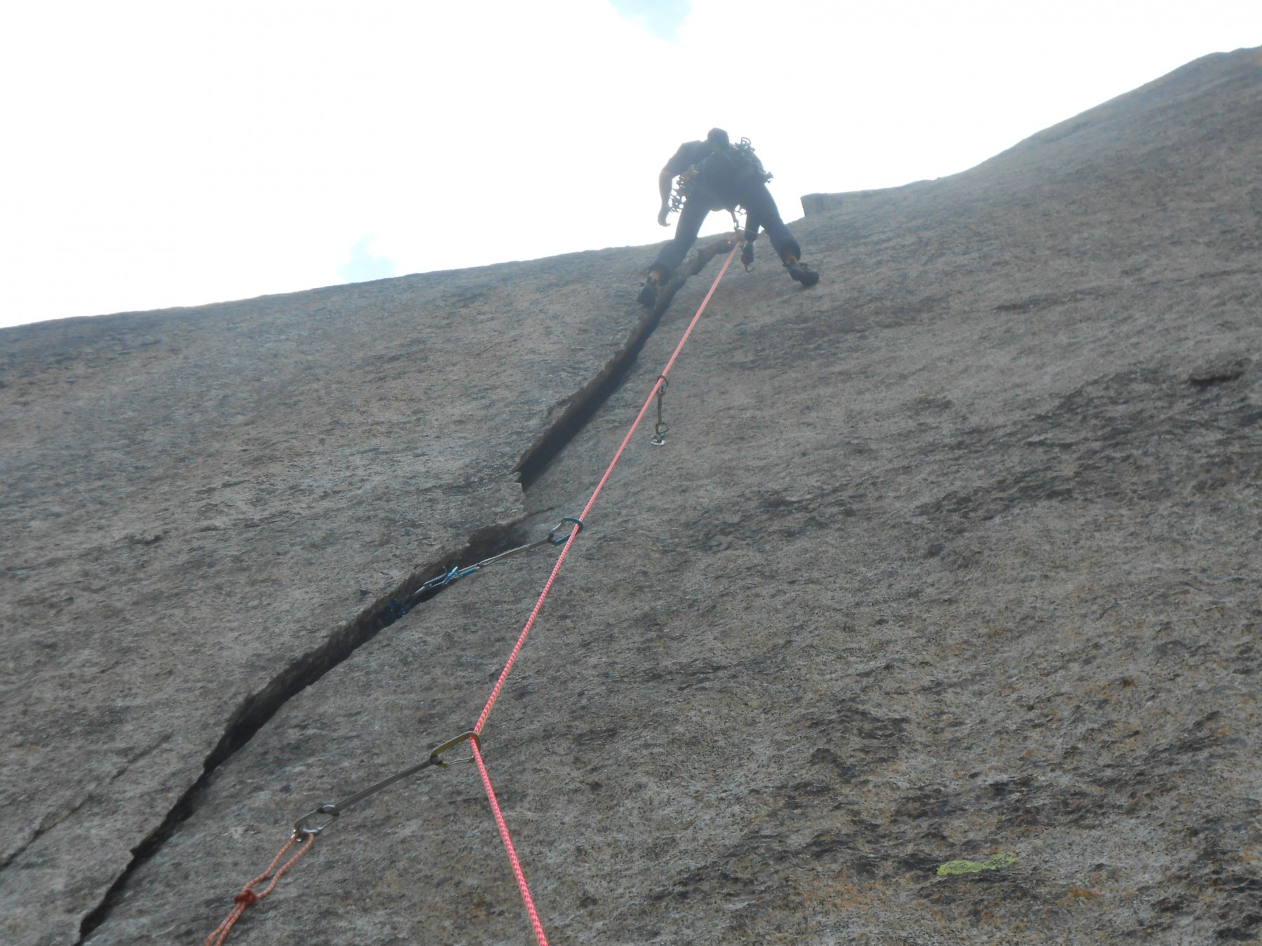 - L8 6a+ incredibile fessura che inizia ad incastro e finisce in dulfer indimenticabile, 30m.