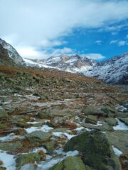 Tutto tranquillo fino al Bignami. Dal rifugio al ghiacciaio il sentiero è praticamente sempre coperto da un sottile strato di ghiaccio. Nel pianoro prima dell’ultimo tratto di salita stare attenti al ghiaccio. Stanotte ha messo giù qualche cm di neve. Oggi ho incontrato molti che salivano coi ramponcini ma non erano strettamente necessari. (Non stento a immaginare che tra qualche settimana lo diventino.)