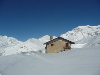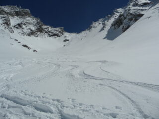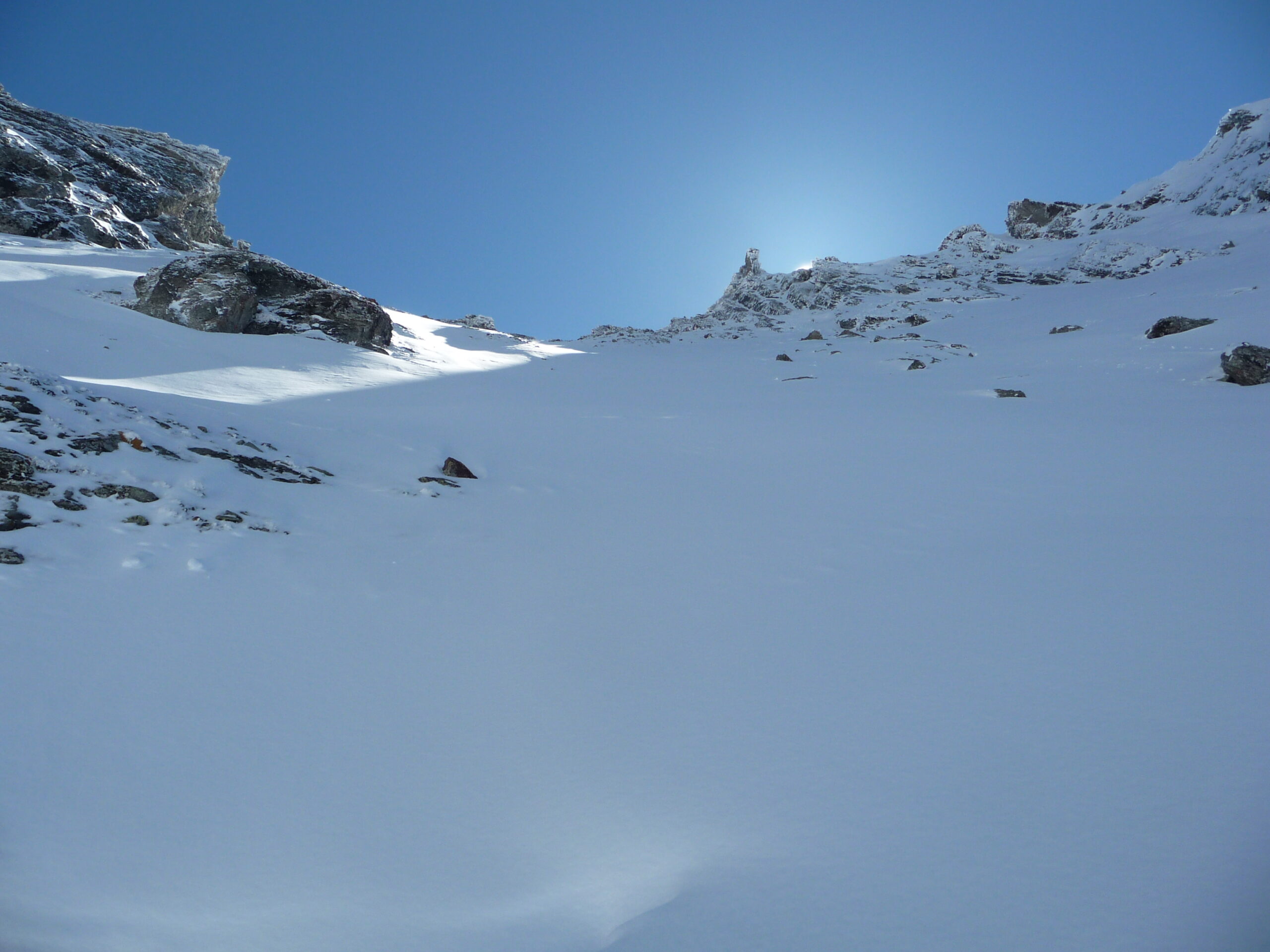 Stamattina si potevano calzare gli sci dal primo ponticello ma in discesa conviene levarli nel piazzale sopra la diga. Salita per itinerario classico con poca neve nella prima parte che aumenta e diventa bella polvere nel vallone in alto ancora in semi ombra. Ultimo tratto con i rampant e discesa ***** stelle in alto che vale un secondo giro.