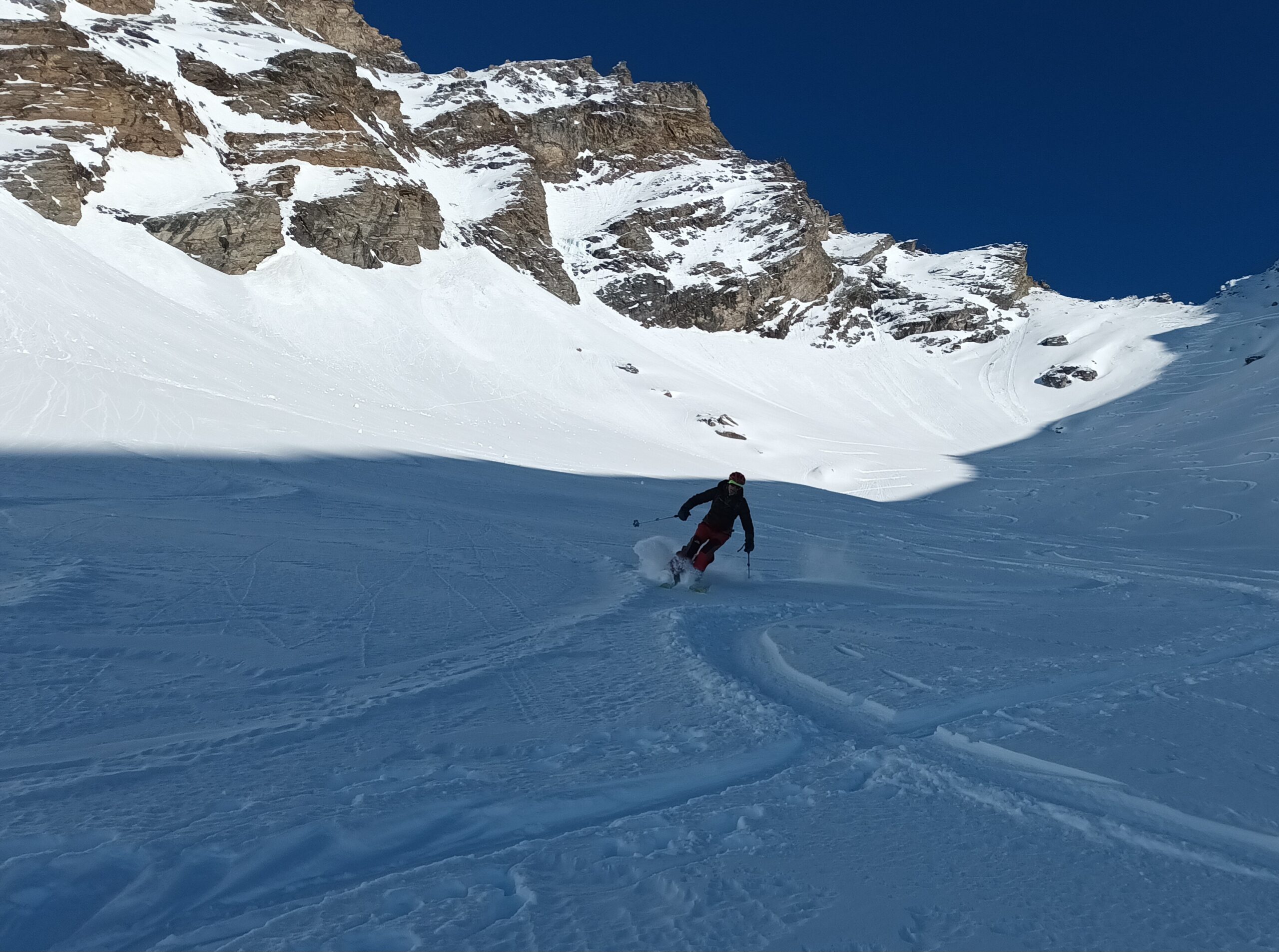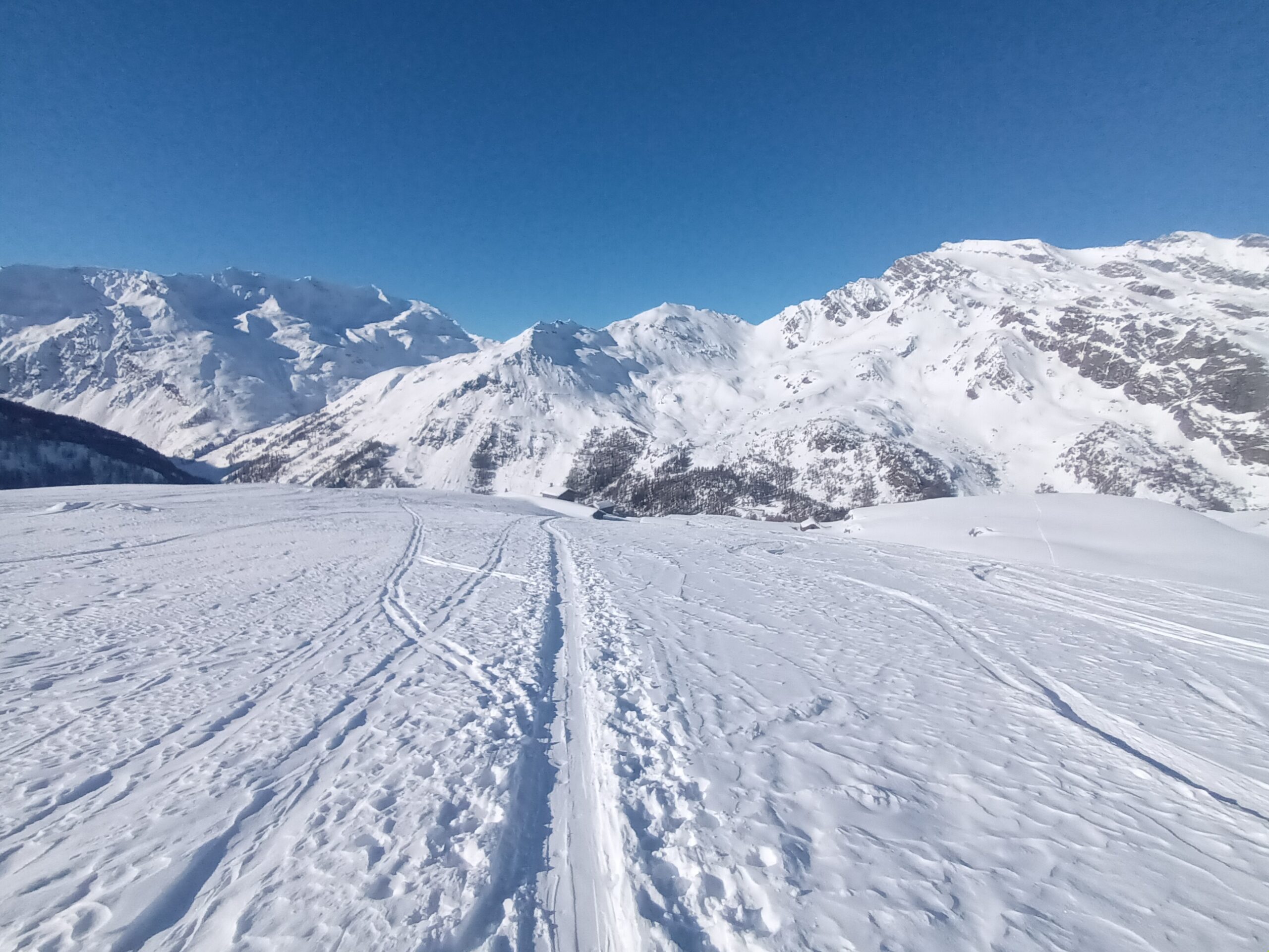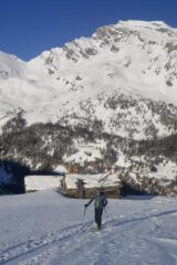 Giornata fredda (-7 gradi alla partenza alle 8.30) ma soleggiata e con poca ventilazione. La lunga strada dal Foyer du Fond che costeggia e sovrasta il lago è perfettamente innevata. Percorso in comune con il Sigaro già tracciato e oggi piuttosto frequentato. Alle baite Plontaz, a quota 2.350, abbiamo deviato per il Col Feluma, intonso, tracciando fino all’inizio del ripido pendio sommitale dove siamo stati raggiunti e superati da altri tre veloci scialpinisti. Utili i rampant. Foto di rito al colle e discesa iniziata con grande cautela per la presenza di pietre seminascoste nei primi metri. Poi polvere stupenda fino a quota 2.200. Più in basso il sole aveva cominciato a lavorare il manto nevoso, comunque sempre sciabilissimo e divertente. Giornata top con Danilo, Vincenzo, Antonio, Valter e Sergio.