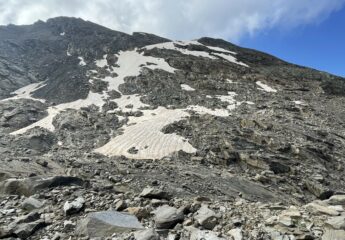 In discesa ho seguito la traccia di sentiero che passa sotto la vetta scendendo per una parte della dorsale salvo poi traversare nella pietraia per ricongiungermi col percorso dell’andata (scelta dettata dalla certezza di non trovare eventuali altri nevai nella parte bassa della dorsale).
