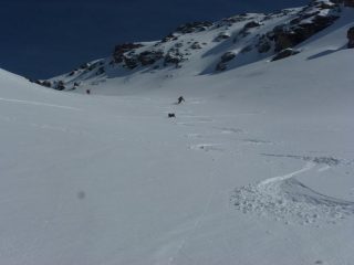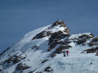 Partiti dagli impianti. Errore: grande ravanata nel bosco. ritorno su Valgrisa, molto meglio. Canalini con neve molto dura. Progressione faticosa. Tracciato fino in cima. Nessuno in giro oltre a noi. Neve bella per la discesa. A tratti farina pesante a tratti trasformata (in basso). Bella giornata, gita panormaica, bella compagia (Angelo, Enrico, Nosi).