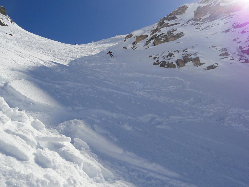 percorso molto bello, oggi in condizioni strepitose con neve ben sciabile da cima a fondo, solo un po’ pesante in basso e, peccato, molto tritata dai numerosi passaggi di oggi (nonostante stamane fosse tutto immacolato!).