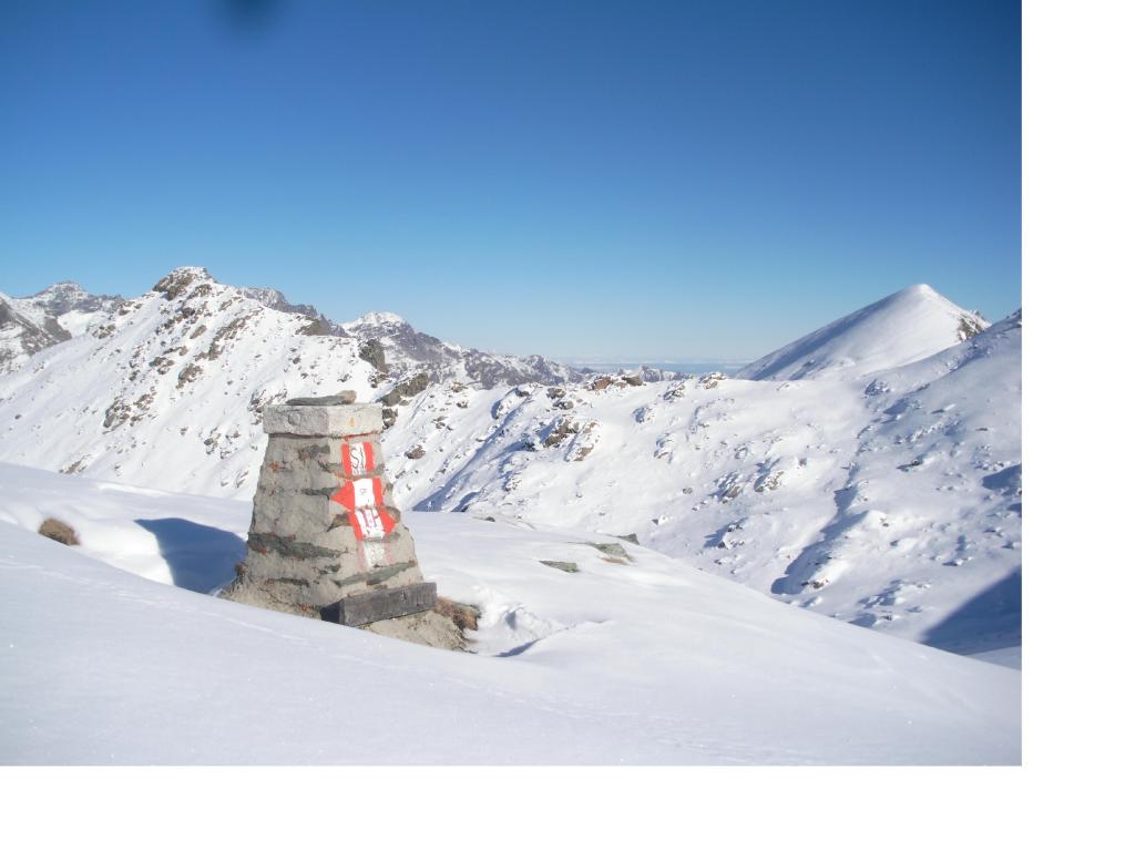 Per continuare l’anello, si torna sul sentiero sottostante raggiungendo rapidamente la depressione del Colle di Costa Fenera, dopodichè si continua a mezza costa sul versante sud in lieve discesa, aggirando i costoni erbosi e rocciosi della quota 2620 m per poi iniziare una breve ma intensa risalita, che culmina con il Colle della Croce di Ferro (breve deviazione per raggiungerlo) 2546 m, nei pressi del quale si trova il Rifugio Ravetto, d’estate aperto nei week end, con il locale invernale sempre aperto.