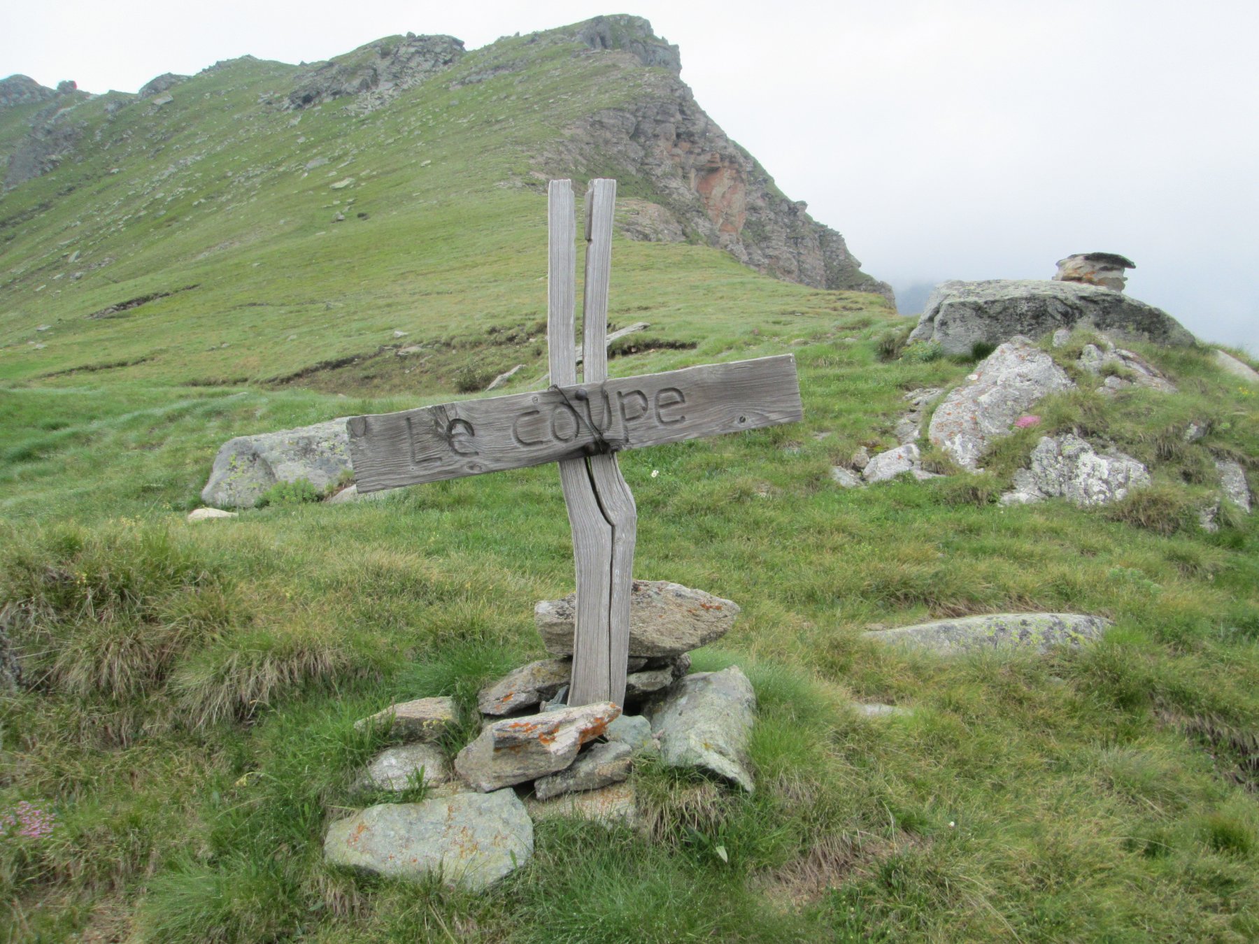 Dal parcheggio si prosegue lungo la strada sterrata oltrepassando l’alpeggio le Combe e il gruppetto di case, si percorrono due tornanti ed al secondo sulla sinistra si stacca il sentiero ben segnalato per il Colle delle Coupe (è anche possibile salire più rapidamente per i prati che precedono l’Alpe le Combe in direzione Ovest, intercettando il sentiero più in alto). Il sentiero prosegue in dolce ascesa verso sinistra, nel bosco per poi uscire su terreno erboso. Raggiunta la base di un pendio di pini si inizia a salire con numerosi tornanti, fino a raggiungere una spalla erbosa, dalla quale si inizia a spostarsi verso sinistra in direzione del Colle delle Coupe (la caserma è ben visibile da lontano), alternando traversi a serpentine. Si incontra e si tralascia la poco marcata deviazione per il sentiero Balcone che permette di raggiungere Balmafol restando in quota, e infine si giunge al Colle delle Coupe 2345 m.
