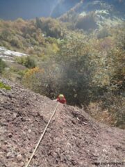 Nell’agosto del 2023, si è deciso di trovare una soluzione per “evitare il primo tiro”, poco coerente con la difficoltà dell’intera via (6a+ comunque azzerabile ma delicato per il tipo di roccia) .