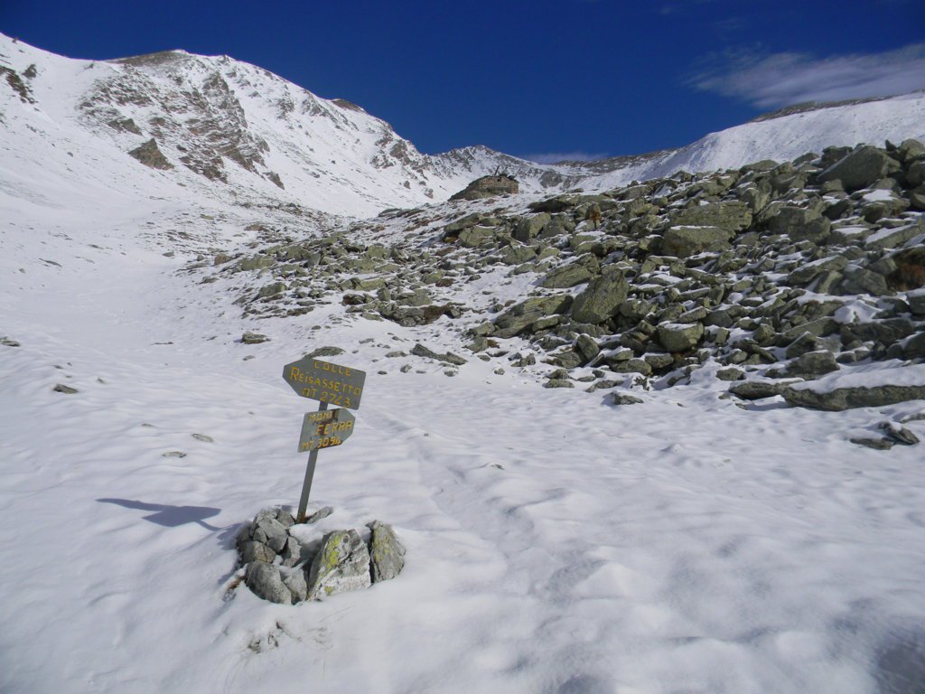 Poco prima di grange Reisassa c’è una palina, si ignora il tronco di sinistra che sale al colle di Reisassetto e si prende la traccia a destra che ci porta al Lago Reisassa.