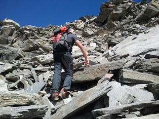 La cresta è bella da percorrere, la roccia è buona e lascia ampio spazio alla fantasia, si passa un po’ su un lato un po’ sull’altro, preferendo a volte la salita diretta sui roccioni oppure l’aggiramento per poi arrampicare in modo meno esposto; diciamo che la difficoltà uno se la va a cercare, in ogni caso non meno di II- e non più di II.