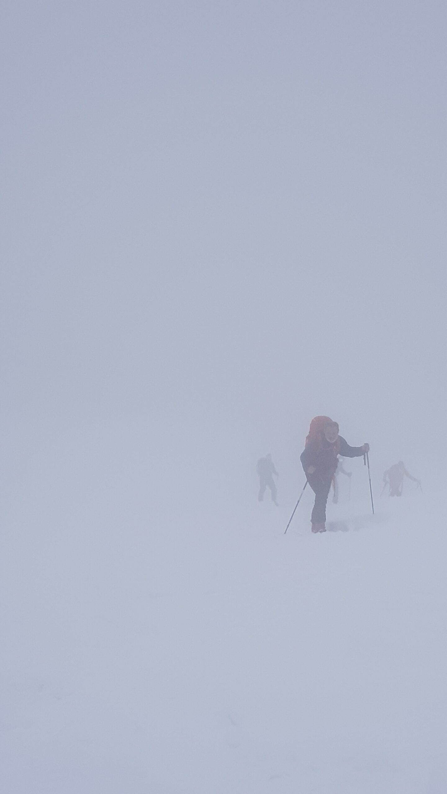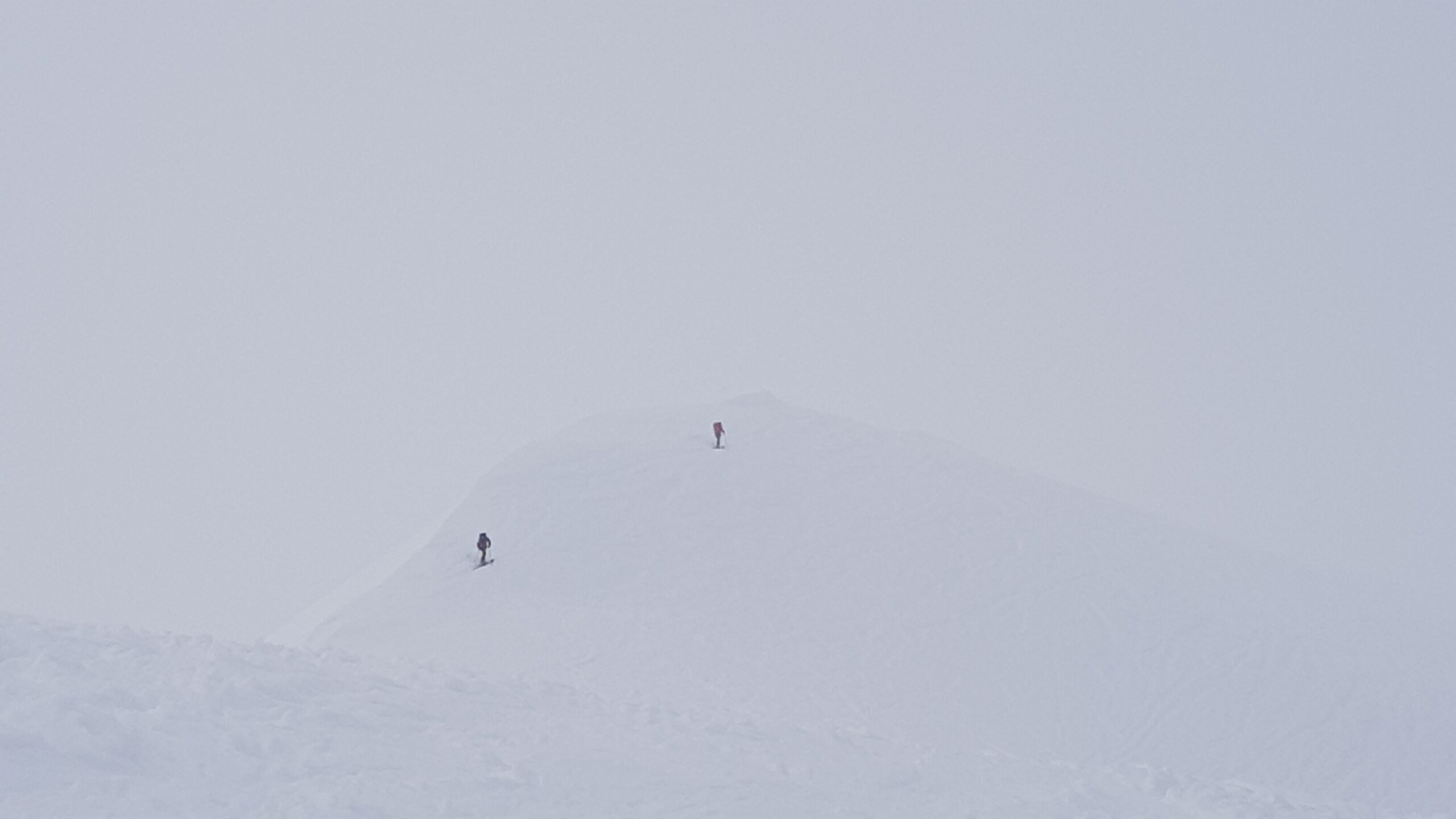 Gita da buon dislivello e con un bellissimo panorama che purtroppo ci è stato negato dalla nebbia. Gli impianti aperti per la gara di snowboard hanno disturbato la salita, peccato. Discesa in pista per via della nebbia.